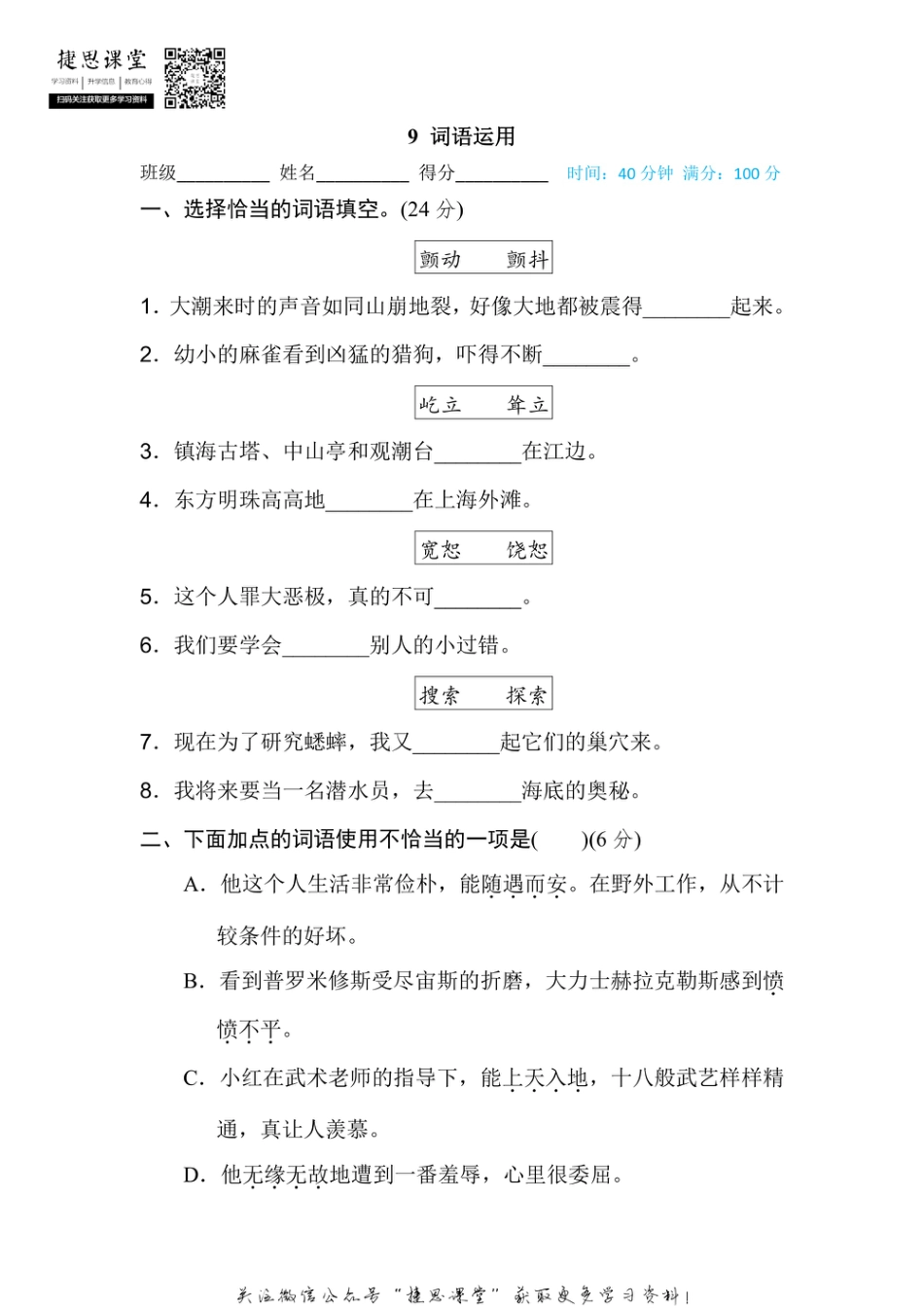 四年级上册语文部编版期末专项训练卷9词语运用(含答案).pdf本文件免费下载 【共6页】