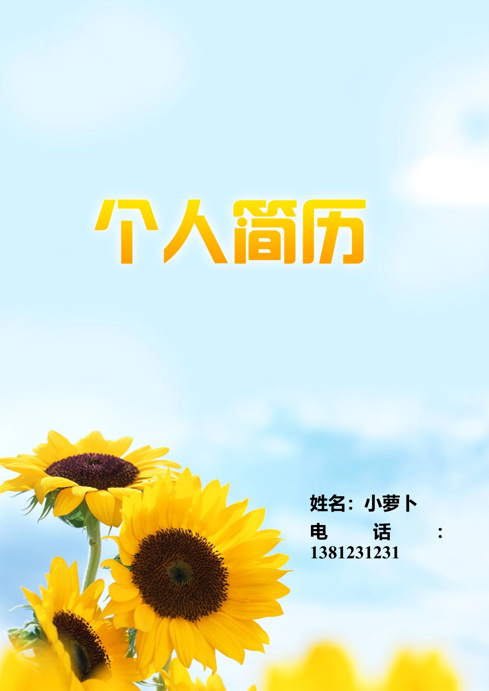 姓名:电话:姓名:小萝卜电话:1381231231
