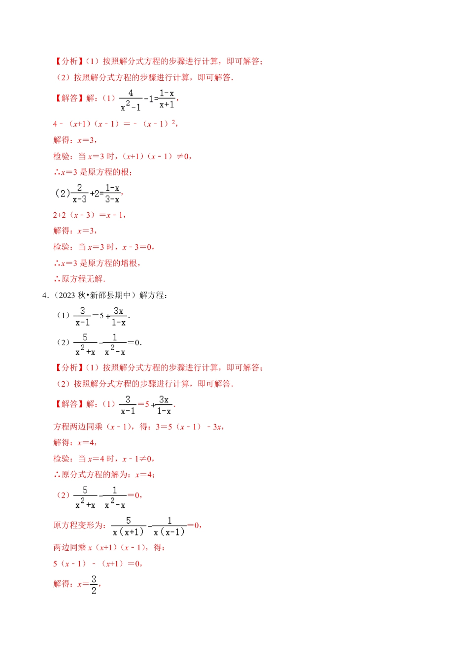 专题提升02解分式方程与分式方程的实际应用�������30���1��2023�•����������������������������������������x����������������������2�x+1���x+8���4�x�1�������2x+2�x�8��4x+4�����������5x�10�����1��x�2�����x�2��x2�1�3�0���������x�2�2��2023�•�����������1���2�������1��������������������������x������������2��������������������������x������������������1������x�x+2��2�x2�4������x2+2x�2�x2�4�����������2x��2����1��x��1�����x��1��x2�4��3�0���������x��1��2������2�x�1�+3�x+1��1������2x�2+3x+3�1�����������5x�0����1��x�0�����x�0��x2�1��1�0���������x�0�3��2023�•��������������1��������1����������������������2����������������������������1��4��x+1��x�1����x�1�2����x�3�����x�3���x+1��x�1��0��x�3��������2+2�x�3��x�1����x�3�����x�3��x�3�0��x�3���������������4��2023�•�����������1��5��2��0������1����������������������2����������������������������1��5��������x�1����3�5�x�1��3x����x�4�����x�4��x�1�0�����������x�4��2��0���������0�����x�x+1��x�1����5�x�1���x+1��0����x������x���x�x+1��x�1��0�����������x��5��2023�•����������1���2�������1����������������������2����������������������������1��x�2�x�1���3����x�5�����x�5��x�1�0��x�5��������2��5�x�1�+4x�x+3����x�1�����x�1��x�x�1��0��x�1���������������6��2023�•����������1���2�������1�������������������������1����������������2����������������������������������������������������������������������1���������11x�22��3�x�2����������11x+3x�6+22��������14x�28�����1��x�2�����x�2�����������������2���������x�2�4����������x�6�����x�6��������������������x�6�7��2023�•���������������1���2�������1�������������������2�������������������������1���������x�2�3�2x�1�������x�2�6x�3������������5x��1�����1��x������x����������������x���2�������8+x2�4�x�x+2�������8+x2�4�x2+2x�����x2�x2�2x��8+4����x�2�����x�2������������������8��2023�•�����������1��+1��2���������1���������3x+3�������x����������2���������x+3��x�3�������x����������������1���������3x+3���3x�2x+3x+3�����3x�5x+3���x�����...