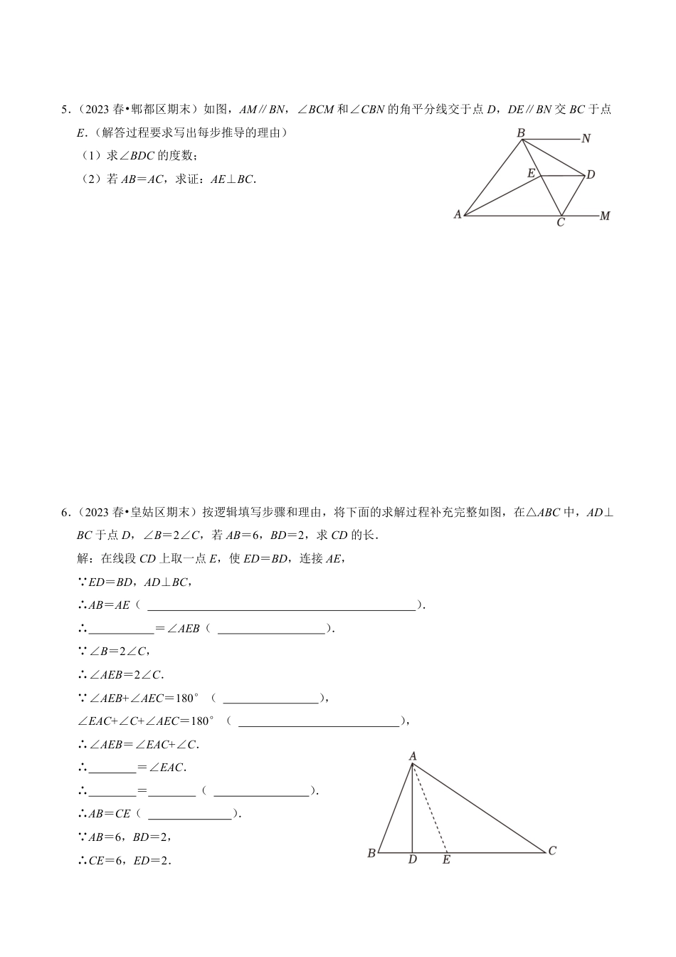 专题第01讲等腰(边)三角形的判定与性质�������30���1��2022�•������������D�E����ABC��BA�BC���������DAC����AF��AF�BC��1�����ABC��������2���ACE�����AF��G���B�40°���AGC����2��2023�•��������ABC��BD�CD�����ABC��ACB���D�EF�BC����AB�AC��E�F��1��AB�AC�����AEF����������������2���ABC����18�BC�6���AEF����3��2023�•�����������ABC��AB�AC��ABC����BE�AC��D�AF�AB�BE��F��1���1���BAC�40°���AFE�����2���2��BD�AC����D�BF�8��DF���4��2023�•���������ABC��AB�AC�D�AB������DF�BC��F��CA�����E��1����AD�AE�������������2���D�BA���������������1�����������������5��2023�•���������AM�BN��BCM��CBN��������D�DE�BN�BC��E�������������������1���BDC�����2��AB�AC����AE�BC�6��2023�•����������������������������������ABC��AD�BC��D��B�2�C��AB�6�BD�2��CD��������CD����E��ED�BD���AE��ED�BD�AD�BC��AB�AE����������AEB�������B�2�C���AEB�2�C���AEB+�AEC�180°������EAC+�C+�AEC�180°�������AEB��EAC+�C������EAC�������������AB�CE������AB�6�BD�2��CE�6�ED�2��CD�CE+ED�6+2�8�7��2023�•����������ABC��AB�AC��D��AB�����BCD��A��1���1����CD�CB�����2���2���B�BE�AC�����E�BE�CD����F�①����BCD�2�CBE����②���BDF���������A����8��2023�•�����������ABC��AB�AC���A�BC������ABC�������D���CD��1�����ACD��������2���BAD�140°���BDC����9��2023�•����������ABC��AB�AC��D��BC������E��AC���DE�BE�AE�����DE��AB��F��1����AEF�����������2����BEF���������A����10��2022�•�������1�������ABC���A�90°��B�22.5°����������ABC���������������������������������������������2�������ABC�������B�24°���ABC���������������������������ABC������������3�����������������������������������������������������11��2022�•������������ABC��AB�AC�AC�AB����BD�CE����O��1�����OBC��������2����O����BAC������������12��2022�•�����������ABC��AB�AC�D�AB�������D�DE�BC��E���ED�CA����F��1�����ADF��������2���F�30°�BD�4�AD�2��EC���13��2022�•������������ABC���ACB����CD�AB��D�DE�BC��1���1�����CDE��������2���2��DE���ADC�AC�E��ABC�30°��BC����F�BF�DF��BC�12��DF���14��2022�•��������������ABD��AB�AD�AC���BAD��BD��E��1�����BCD��������2���ABD�50°��BCD�130°���ABC����15��2023�•����������O����ABC����D��ABC������AOB�110°��BOC�α��BOC��ADC��OCD�60°���OD��1...
