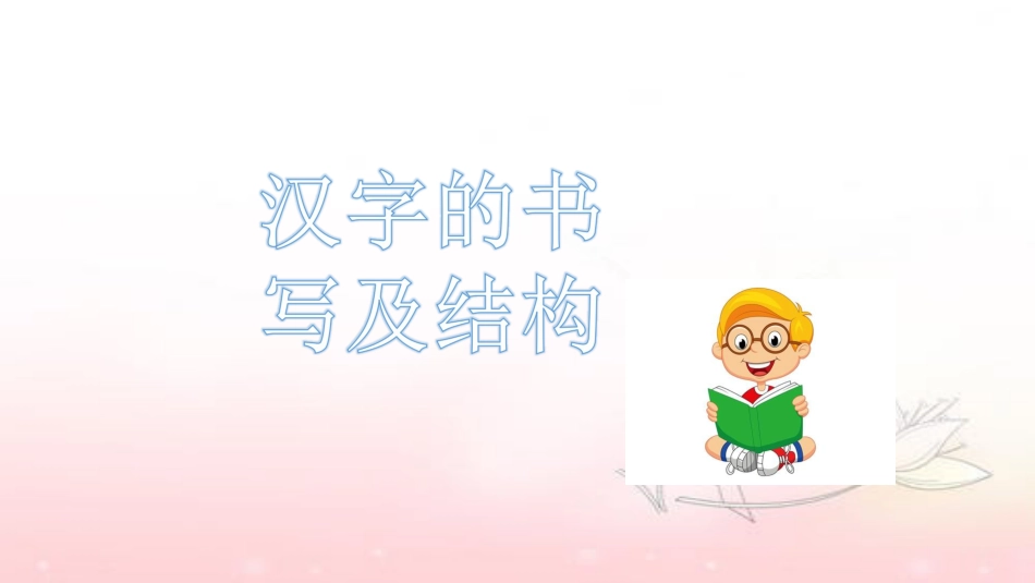 小升初语文总复习专题二·汉字(书写及结构)语文统编版六年级下《语文新课程标准》具体要求:1.小学阶段累计认识常用汉字3000个左右,其中2500个左右会写;2.掌握汉字的基本笔画和常用偏旁部首;3.按笔画规则用笔写字,注意间架结构,初步感受汉字的形体美;4.会用音序检字法和部首检字法查字典、词典。❃专题解说1.判断下列说法,对的打“√”,错的打“×”2.给某字加偏旁组成汉字填空。3.写出某字的部首。4.与某组字结构顺序完全相同的是?❃常考题型一、(1)笔画就是构成汉字的各种点和线汉字最基本的笔画有八种:点(、),横(—),竖(|),撇(/),捺(\),提(/),钩(」),折(∟)。汉字笔画名称表(2)笔顺的一般规则先横后竖,先撇后捺,从上到下,从左到右,先外后里,先外后里再封口,先中间后两边。1.点在正上方或左上方,先写点;“门,主”。2.点在右上方,后写点。“犬”。3.竖在上面先写竖。“占、卢”。4.下包上结构,先上后下。“凶”。5.左上包围和右上包围,先外后内。“庆”。❃特殊字的书写规则(3)偏旁与部首偏旁是合体字的组成部分。一个字上下左右能独立的部分叫“偏旁”。部首是字典、词典根据汉字形体偏旁所分的门类。(4)间架结构:包括体字独和结构合体字。结构独体字:中一大合体字有6种类型:左右结构:朋、伟、钢上下结构:思、架、垫左中右结构:街、斑上中下结构:鼻、赢、冀半包围结构:句、这、压、凶、风、建、属、府、房全包围结构:圆、国、回判断下列说法,对的打“√”,错的打“×”。❃例题一1.“鼎”共有13画,第七笔笔画名称是竖。2.“凹”共有四笔。3.“区”共四画,第四笔名称是竖折。4.“臣”共六画,起笔笔画名称是横。××√√这是一道对笔画名称和笔顺进行综合练习的题。我们要准确数出笔画数。根据笔顺规则,写横画左到右,竖画上到下等。❃答题技巧明显的()果鲜香的()子黏黏的()水()大的进步()洁的月光()滑的敌人❃例题二给“交”字加偏旁组成汉字填空。效、饺、胶、较、皎、狡本题考查有关偏旁部首的知识。根据语境,在一个字的基础上,加上偏旁成为新的合体字。平时要注意积累生字新词。❃答题技巧耽()屉()鸟()瘟()❃例题三写出下列字的部首。耳尸鸟疒本题对汉字部首知识考查。一个汉字有两个或者两个以上部首,取上不取下,取左不取右等。字本身是部首要特别记忆。❃答题技巧A赵、来、萍、昌B冈、垂、惊、无C医、凸、刘、念❃例题四与“这、年、灌、思”这组字结构顺序完全相同的一组()C本题对汉字间架结构的考查。首先弄清楚各字的结构然后和选项字对应,找出结构顺序完全相同的。❃答题技巧A长丸近气B盼空党卷C医凸刘品❃练习一下列各字起笔完全相同的一组()A下列关于字形结构说法正确的是()❃练习二BA.“胧”“胳膊”这三个字的“月”字表示身体部位。B.“蛾”“蚊”“蝶”这三个字都和昆虫有关,所以“虫”字旁。C.“落”部首查字法先查“氵”,再查9画。D.“医”半包围结构的字,共8画。给“肖”加偏旁组成新字,再填空。❃练习三宵、销、峭、哨元()节那一天,公园里()售着各种花灯。那些形状各异的花灯煞是好看,最好看的要数挂在山坡()壁上的“双龙戏珠”了。午后,传来一阵()声,一群天真可爱的孩子们来了。他们在这里玩得多开心啊!应怜屐齿印苍苔❃练习四1.这句诗中____________两个字是半包围结构。2.“屐”共有____画,第9画得笔画名称是____3.“齿”“苍”“苔”这三个字按照_______书写规则书写。4.“苍”“苔”部首是“艹”,请你再写三个带有“艹”的字_______。1.应、屐2.10、横撇3.从上到下4.草、蓝、芒