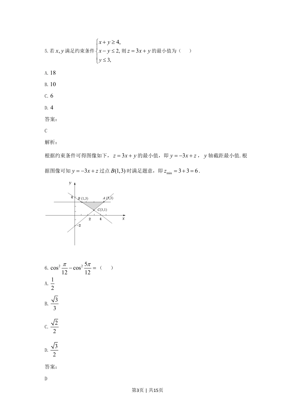 2021年高考数学试卷(文)(全国乙卷)(新课标Ⅰ)(解析卷) (1).pdf本文件免费下载 【共15页】