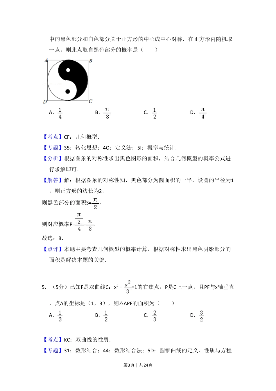 2017年高考数学试卷(文)(新课标Ⅰ)(解析卷) (7).pdf本文件免费下载 【共24页】
