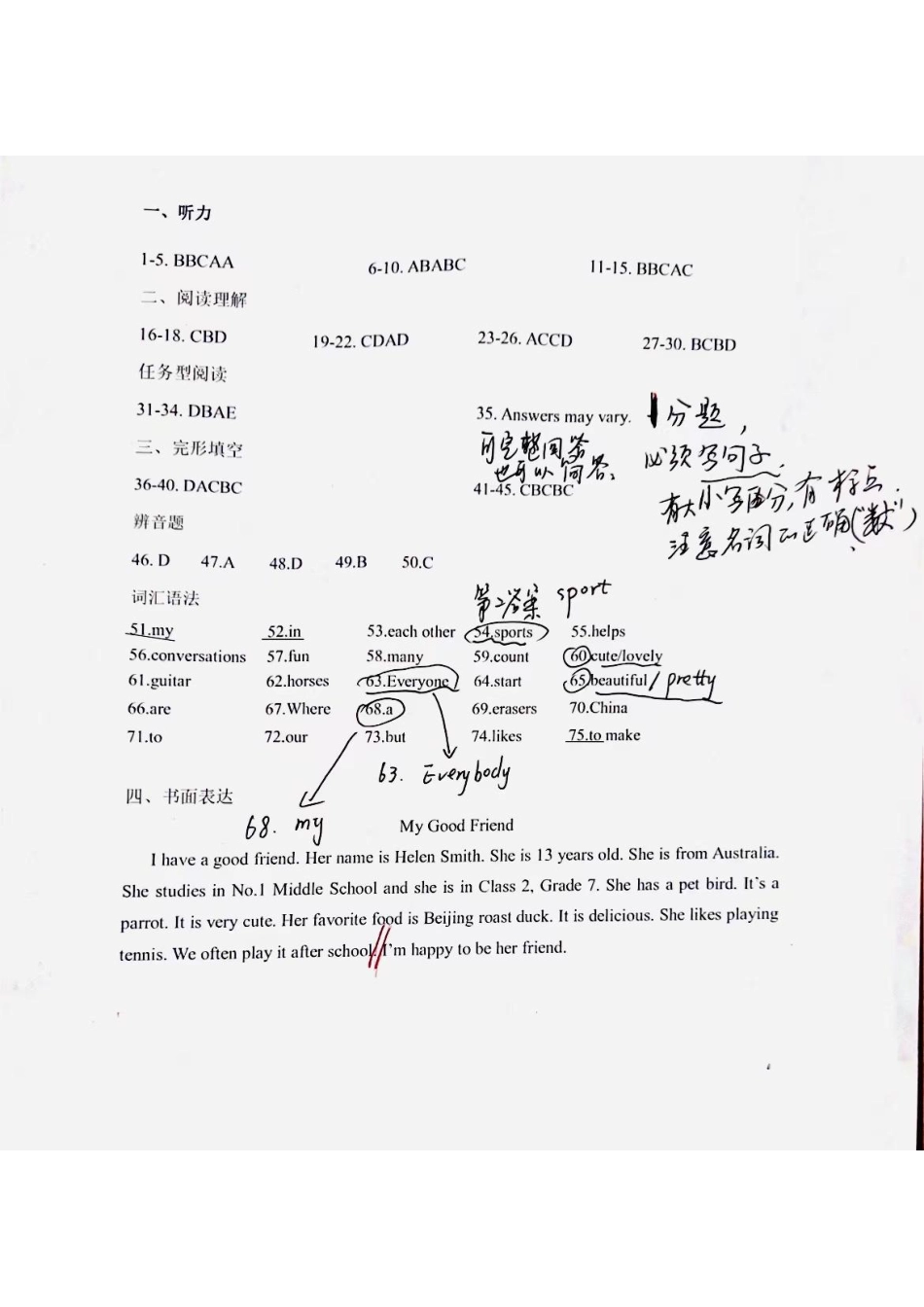 英语答案-2411义乌市绣湖中学七上期中.pdf