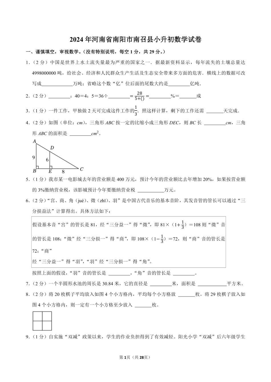 2024年河南省南阳市南召县小升初数学试卷附答案解析.pdf本文件免费下载 【共28页】