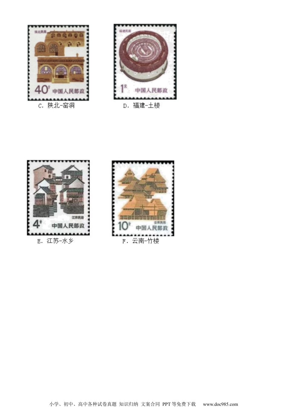 小学、初中、高中各种试卷真题知识归纳文案合同PPT等免费下载www.doc985.com黄浦区2023年高中学业等级考调研测试历史试卷(考试时间:60分钟;总分:100分)考生注意:1.本考试设试卷和答题纸两部分,试卷包括试题与答题要求;所有答题必须写在答题纸上;做在试卷上一律不得分。2.答题前,务必在答题纸上填写准考证号和姓名,并将核对后的条形码贴在指定位置上。3.答题纸与试卷在试题编号上是一一对应的,答题时应特别注意,不能错位。1.中国的民居民居是建筑中最早出现的类型,是中国建筑史上对民间居住建筑物的习惯称呼。中国的民居建筑是千百年来人们在适应与改造大自然的漫长岁月中创造出来的。(1)下列邮票选自中国人民邮政出品的中国民居系列,请根据要求将它们做大致的分类。(填写字母)小学、初中、高中各种试卷真题知识归纳文案合同PPT等免费下载www.doc985.com小学、初中、高中各种试卷真题知识归纳文案合同PPT等免费下载www.doc985.com①北方:_____________②南方:_______________(2)中国幅员广阔,各地的民居建筑多姿多彩,各具特色,决定其特点的因素有哪些?(3)目前为止,中国共计有世界文化遗产56处,其中有三处民居,分别是2000年入选的皖南古村落西递宏(保持19世纪已消失或改变了的乡村风貌),2007年入选的开平碉楼和村落(代表了近5个世纪的塔楼建筑的巅峰),2008年入选的福建土楼(世界上独一无二的的神话般的山村民居建筑)。你觉得它们能够入选的原因是什么?【答案】(1)①.ABCG.②DEFH(2)因素:居住地的自然环境,经济发展水平,文化习俗等多方面因素。(3)原因(本题具有一定的开放性,符合材料言之有理即可):它们都保存了独特的建筑,反映了传统的文化,具有普遍而杰出的价值。【解析】【小问1详解】分类:根据材料结合所学可知,建筑要与地理环境相适宜,具有典型地域性,A.内蒙古蒙古包属于典型草原风格建筑、B.北京四合院典型北方民居、C.陕北窑洞西北黄土高原典型民居、G.东北马架房适应东北特殊气候,故A、B、C、G属于北方民居典型代表;D.福建土楼典型客家文化代表,是南方民居代表、E.江苏水乡建筑适应南方多沟渠的特点,地域特色明显、F.云南主楼适应当地气候,西南少数民族民居代表、H.上海石库门呈现中西合璧的特点,是近代中西交流的见证,典型南方民居,故D、E、F、H属于南方民居的代表。【小问2详解】因素:中国幅员广阔,影响民居因素多样,既有自然地理因素例如地理位置、气候、地形等因素,又有社会历史文化因素例如经济发展水平、文化习俗、历史变迁、政府政策规划、建材类型等多种因素。【小问3详解】原因:能够入选的原因是多方面的,一方面该类建筑具有典型的历史文化和审美价值,是建筑艺术与历史小学、初中、高中各种试卷真题知识归纳文案合同PPT等免费下载www.doc985.com文化的载体,具有独特价值;另一方面这类建筑处于频危阶段,不可复制,有利于保护与传承。2.中历、西历历法,是为了配合人们日常生活的需要,根据天象而制订的计算时间方法。根据月球环绕地球运行所订的历法称为阴历;根据太阳在不同季节的位置变化所订的历法称为阳历。(1)将下列世界古代各地的历法与所属的地区或主要编者相匹配A.古代埃及①玛雅历B.印第安地区②授时历C.古罗马凯撒③太阳历D.元朝郭守敬④儒略历中历,又称“阴历”“农历”,是中华文明的一大象征。过去的东亚汉文化圈以农耕文明为主,传统的中历既表现月亮的阴晴圆缺,又反映太阳的四时变化,是非常适合东亚社会的,中国、朝鲜半岛、日本、越南等东亚、东南亚国家和地区一用就是两三千年。中历过去在东亚的通用,还具有国际秩序的象征意义。“正朔,所以统天下之治也。”(徐兢《宣和奉使高丽图经》卷四十《同文》)。中国是世界上最早发明历法的国家之一,也曾以颁赐历法来宣示对天下的控制。在朝贡—册封体制之下,通用或部分通用中国历法,每年由中原朝廷颁赐历书供各国和各地区使用,或授权有些国家或地区据此编出各自的代用历书,此即所谓的“颁正朔”或“奉正朔”,是东亚传统国际秩序的象征。使用统一的中历历法,曾经是东亚汉文化圈的传统标志之一。在漫长的岁月...