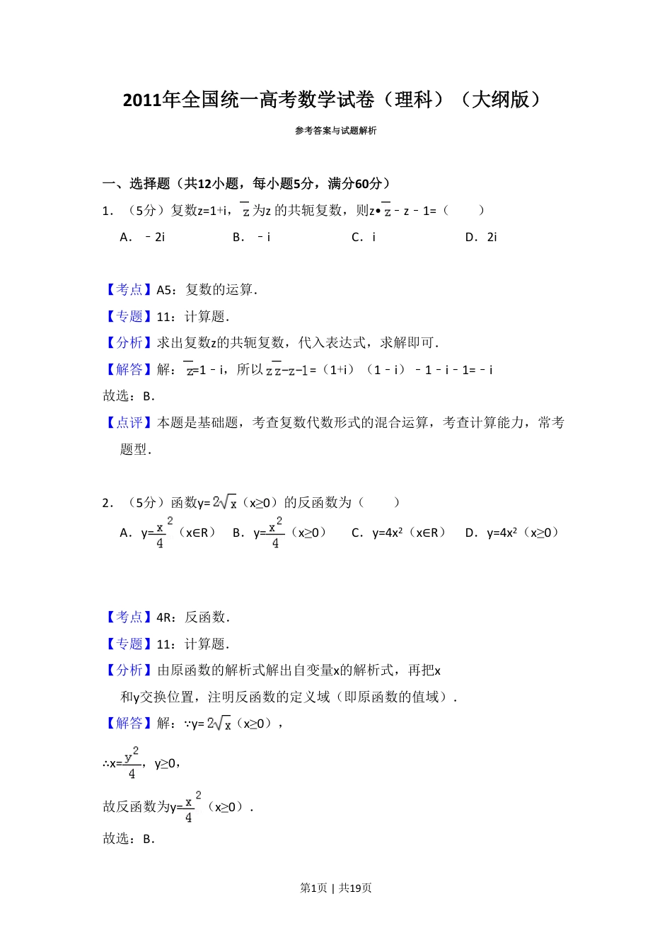 2011年高考数学试卷(理)(大纲版)(解析卷) (3).pdf本文件免费下载 【共19页】