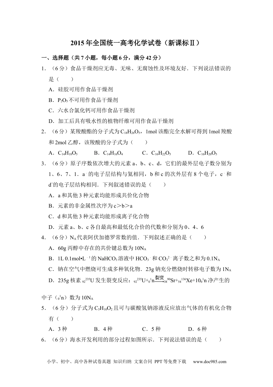 2015年高考化学试卷(新课标Ⅱ)(空白卷) (4).docx本文件免费下载 【共9页】