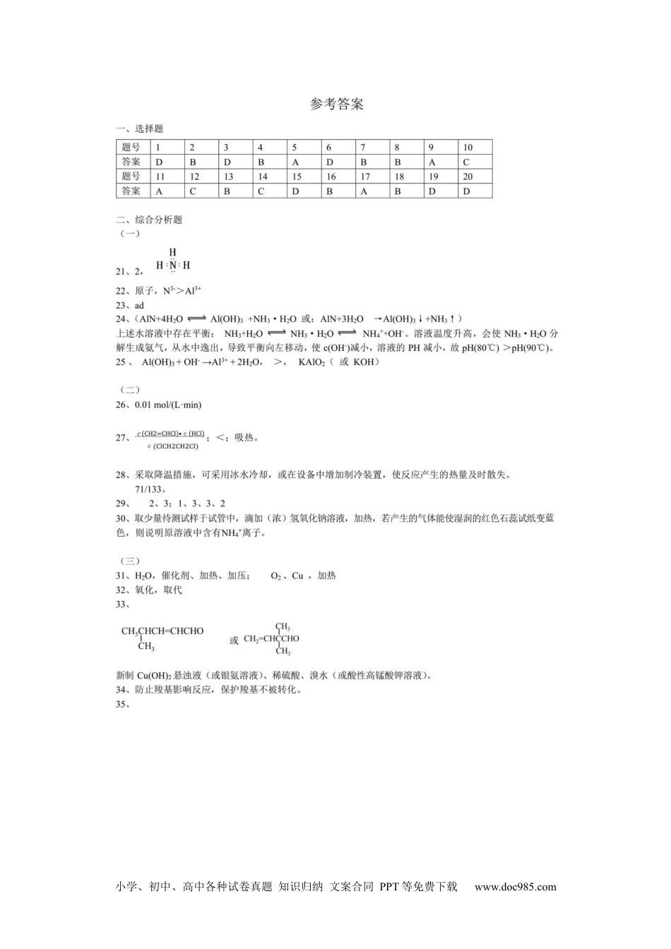 2020年高考化学试卷(上海)(解析卷) (1).docx本文件免费下载 【共6页】