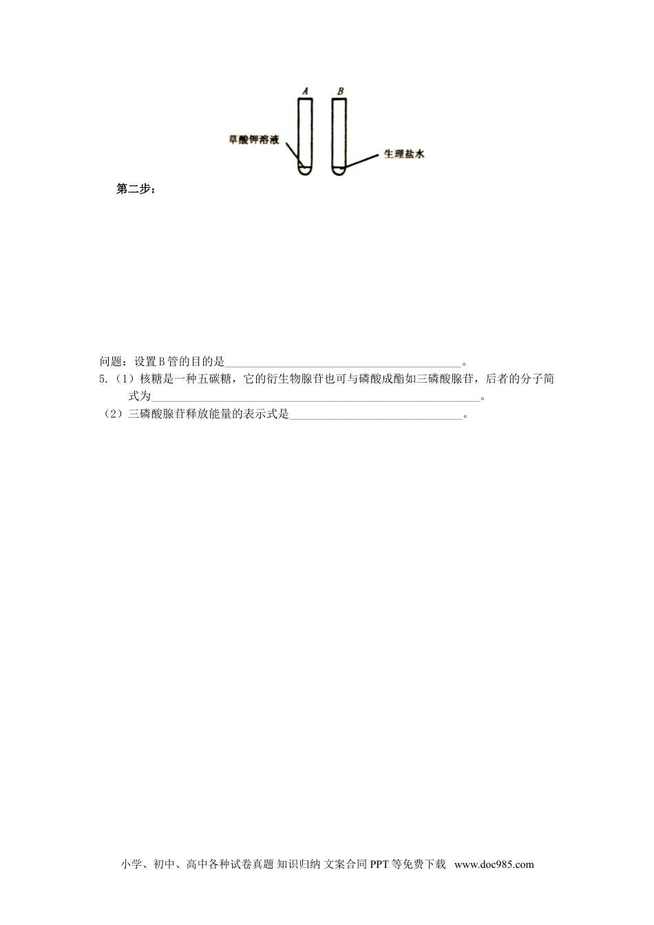 2000年辽宁高考生物真题及答案一、单项选择题1.在我国西部大开发的战略中,“保护天然林”和“退耕还林(草)”是两项重要内容,采取这两项措施的首要目标是:A.开展生态旅游B.发展畜牧业C.增加木材产量D.改善生态环境2.细胞质基质、线粒体基质和叶绿体基质的:A.功能及所含有机化合物都相同B.功能及所含有机化合物都不同C.功能相同,所含有机化合物不同D.功能不同,所含有机化合物相同3.假如水稻高秆(D)对矮秆(d)为显性,抗稻瘟病(R)对易感稻瘟病(r)为显性,两对性状独立遗传,用一个纯合易感病的矮秆品种(抗倒伏)与一个纯合抗病高秆品种(易倒伏)杂交,F2代中出现既抗病又抗倒伏类型的基因型及其比例为:A.ddRR,1/8B.ddRr,1/16C.ddRR,1/16和ddRr,1/8D.DDrr,1/16和DdRR,1/84.豆科植物与根瘤菌的互利共生关系主要体现在:A.豆科植物从根瘤菌获得NH3,根瘤菌从豆科植物获得糖类B.豆科植物从根瘤菌获得含氮有机物,根瘤菌从豆科植物获得NH3C.豆科植物从根瘤菌获得N2,根瘤菌从豆科植物获得有机物D.豆科植物从根瘤菌获得NO,根瘤菌从豆科植物获得NH35.请据图回答,经数小时后,U形管A、B两处的液面会出现下列哪种情况?(实验A.A处上升,B处下降B.A、B两处都下降C.A处下降,B处上升D.A、B两处都不变6.下图是一个陆地生态系统食物网的结构模式图,下列叙述中不正确的是:A.在该食物网中,共有五条食物链存在B.在该食物网中,H处于三个不同的营养级C.若B种群中各年龄期的个体数目比例适中,则该种群的密度在一段时间内会明显变大D.在该食物网中,如果C种群的数量下降10%,则H的数量不会发生明显变化7.切除某动物的垂体后,血液中:A.生长激素减少,甲状腺激素也减少B.生长激素减少,甲状腺激素增加C.生长激素增加,甲状腺激素也增加D.生长激素增加,甲状腺激素减少小学、初中、高中各种试卷真题知识归纳文案合同PPT等免费下载www.doc985.com8.植物细胞表现出全能性的必要条件是:A.给予适宜的营养和外界条件B.导入其它植物细胞的基因C.脱离母体后,给予适宜的营养和外界条件D.将成熟筛管的细胞核移植到去核的卵细胞内装置足以维持实验过程中小白鼠的生命活动,瓶口密封,忽略水蒸气和温度变化对实验结果的影响。)9.在下列哪项实验条件下,植物的幼嫩部分首先表现出病症?A.氮亏缺B.钙亏缺C.磷亏缺D.钾亏缺二、非选择题(共42分)1.(11分)是典型的放射源,可用于作物诱变育种,我国应用该方法培育出了许多农作物新品种,如棉花商产品种“鲁棉1号”,年种植面积曾达到3000多万亩,在我国自己培育的棉花品种中栽培面积最大。射线处理作物后主要引起__________________,从而产生可遗传的变异,除射线外,用于人工诱变的其它射线还有______________、______________、______________、______________和______________。2.(15分)番茄在运输和贮藏过程中,由于过早成熟而易腐烂.应用基因工程技术,通过抑制某种促进果实成熟激素的合成能力,可使番茄贮藏时间延长,培育成耐贮藏的番茄新品种,这种转基因番茄已于1993年在美国上市.请回答:(1)促进果实成熟的重要激素是___________,它能够发生的化学反应类型有________________、________________和________________。(2)在培育转基因番茄的基因操作中,所用的基因的“剪刀”是________________,基因的“针线”是________________,基因的“运输工具”是________________。(3)与杂交育种、诱变育种相比,通过基因工程来培育新品种的主要优点是________________和________________。3.(9分)写出三种与光合作用有关的矿质元素的元素符号及它们在光合作用中的作用:(1)元素:______,作用___________________________________________________;(2)元素:______,作用___________________________________________________;(3)元素:______,作用___________________________________________________。4.(10分)血液中的钙离子在血液凝固过程中起重要作用,缺乏则血液不能凝固,草酸钾溶液能与血液中的钙离子发生的反应,形成草酸钙沉淀,起抗凝作用,请根据提供的实验材料和用具,简要写出第二步及以...