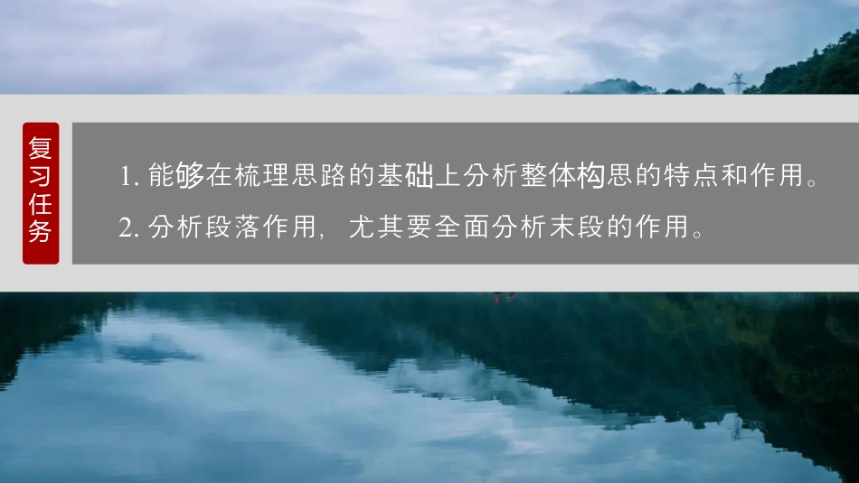 分析构思特点和作用重点突破学案1复习任务群三1.能在梳理思路的基上分析整体思的特点和作用。够础构2.分析段落作用,尤其要全面分析末段的作用。复习任务题点图要分析构思特点和作用活动一散文的思就是散文的篇布局。是高考考的点,考构谋它查热查既可以整体上分析其特点,又可以行如从进诸“索线”“材选”“段落”等方面的考。专项查阅读下面的文字,完成后面任务。北京雨燕以及行者李敬泽北京雨燕,是唯一以北京命名的野生。在民有一,鸟类它间个诨号叫“无脚鸟”。的四趾全部朝前,只适合住高的枝或梁木,所它抓处树以有脚等于无脚,落到地上不能走也不能,被雨或病打落在既飞风伤地,那就是死亡。北京雨燕的神奇在于日一日毫不停歇地,它复飞它在翔中睡,在翔中捕食虫,在翔中俯冲下去,掠取大河或飞觉飞飞飞大湖中起的水滴。北京雨燕的一年中,除了雌必孵育的溅鸟须雏鸟两三月,一直在天上,一直在。个它们飞如果用一形容比我理想中的作家,那他就是北京雨种鸟来来喻么燕。在北京,沿着中走去,那些宏的建筑都在召着我,你轴线过伟唤们引我的目光向上升起。安定、正、天安、午、神武、领们门阳门门门门鼓,城拔地而起,把的目光、的心向天空。北京雨燕把钟楼楼你你领的目光拉得更,如果是一作家,就是天空、翔、方、你远它个它将飞远广无垠的世界定的根性和天命。心天下,抗拒着、承担阔认为它它怀着自大地之心的引力,不大地把拘禁在此此地、此身此心。来让它时比如曹雪芹。他是望着天上的人,是往天上放了一只又一只飞飞燕的人,他的命里有天空、有永高而不落地的,那就是北风筝远飞鸟京雨燕。的一作家有一奇的尺度感,他把一切都放入永恒这样个种异大荒,痴迷于不超越中的翔。一北京雨燕式的作家,并断飞这样个会本能地拒在地性。他成于北京,《》是北京故事,但是,绝长红楼梦在中,他未确切地描述座城市。我可以推出府和大书从过这们导贾观的空分布,但在部中,整座城市的地理空毫无念。园间图这书你对间概他大浮在空中,浮在空中的大映照和指涉着广大世让观园飘让飘观园界、茫茫人。间我又想起另一行家,就是天大、行者悟空。小候个飞齐圣时读《西游》,有一大的疑惑:悟空那能,一筋斗去,记总个孙么飞个飞过把回交父不就得了?经书拎来给师吗第九十八回,作者才做出了回答,在天上、走飞“云路”能解的决就不是;人之人的是,他必走问题问题为问题须“本路”,他无法直接抵,人是在向死而去的一天一天里,在达终极“本路”、在地上的路获得他活着的意。所以,义“云路”上取的不是,在大地上用脚经真经双一步一步走去,在人世的苦、人生的中走去,才算得了。过难过这真经悟空,大的行者,他的本性是,他也于了落地,孙这伟飞终学会了在地上一步一步走,走万里路而成佛。学会过长在,我心里上就有了一像行者那的作家,他就是杜甫。现马个样年的杜甫是凰,心高万仞,志凌云。轻时凤壮“胸生曾云,眦荡决入。凌,一山小。归鸟会当绝顶览众”那是元二十四年,杜甫二十时开四,游山、河北,岁壮东“放,裘狂荡齐赵间马尽清”,望泰山,他遥的目光而上,他的心凌而小天下。随飞鸟绝顶的速度和激情,的一往无前、万里行,不是杜甫了,这样这样横是李白了。杜甫在天三了李白,那一年李白四十四,杜甫三宝载认识十三。第二年,他同游、,杜甫下了《李白》,中的们齐赵写赠诗“痛狂歌空度日,跋扈雄饮飞扬为谁”,完全就是李白的句子。浦起《龙读杜心解》首《李白》和另一首《》:评论这赠画鹰“自是年少盛作,气时都自己照。为写”杜甫的是李白,也是自己,杜甫此的自己,其写时实就是李白。李白人,是这个真“太白”,他光芒四射,路人直到天子,很啊从少有人不他的光芒所震。我相信,人走到里,都是中心,为慑这个哪都是焦点,他是界的皇帝和神,他生前就活在世人的仰望中。诗李白才是正的、粹的北京雨燕。他生有落地,他是真纯毕没“无脚鸟”,他是“仙人谪”,他只活在他自己那空无的尺度里。他的大,阔边伟他杜甫、后人身不能至、心向往之的高格,就在于他是不累,让让来真是不挂,是在;他在人世、在中如此一意孤行,如此真牵真飞红尘飞跋扈、放浪狂。金庸有一句名言:...