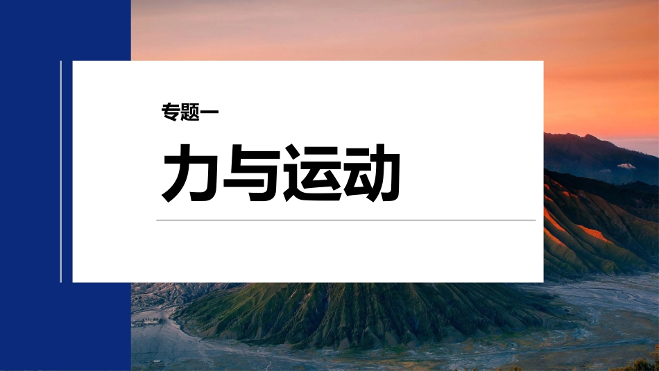 专题一力与运动第3抛体讲运动1掌握运动的合成与分解及关联速度问题。2掌握解决曲线运动的一般方法,会灵活分解平抛、斜抛运动。目标要求3学会解决三维空间中抛体运动问题的方法。内容索引考点一考点二高考预测运动的合成与分解平抛运动专题强化练考点三斜抛运动考点一的合成分解运动与(2023·江卷苏·10)达·芬奇的手稿中描述了一:一罐子这样个实验个在空中沿水平直向右做加速,沿途漏出沙子。若不空线匀运动连续计气阻力,下列中能反映空中沙子排列的几何形是则图图例1√以罐子考系,沙子在水平方向向左做加速直,在直为参匀线运动竖方向做自由落体,合加速度恒定,沙子在空中排列在一斜向运动条左下的直上,故线选D。如所示,套在光滑直杆上的物体图竖A,通跨光滑定滑过轻质细绳过光滑水平面上的物体轮与B相接,连A、B量相同。质现将A从与B等高由止放,不一切摩擦,重力加速度处静释计为g,直杆当细绳与竖的角间夹为θ=60°,时A下落的高度为h,此物体时B的速度大小为例2A.25ghB.45ghC.gh2D.gh√物体设A下落高度为h,物体时A的速度大小为vA,物体B的速度大小为vB,此有时vA=vBcos60°=2vB,物体A、B成的系机械能守恒,有组统则mgh=12mvA2+12mvB2,立方程解得联vB=25gh,故选A。关联速度问题总结提升首先明确物体的实际速度为合速度,将物体的实际速度分解为垂直于绳(杆)和平行于绳(杆)的两个分量,根据沿绳(杆)方向的分速度大小相等求解。常见的模型如图所示。考点二平抛运动1.平抛及究方法运动研(1)做平抛的物体在任意刻的速度方向水平方向的角设运动时与夹为θ,位移方向水平方向的角与夹为φ,有则tanθ=2tanφ,如甲所示。图(2)做平抛的物体任意刻的瞬速度的反向延一定通此水运动时时长线过时平位移的中点,如乙所示。图2.平抛的推运动两个论(2023·浙江6月考选·3)球被水平推出后的程中,不空铅运动过计气阻力,下列于球在空中的加速度大小关铅运动时a、速度大小v、能动Ek和机械能E随运动时间t的化系中,正确的是变关例3√由于不空阻力,球被水平推出后只受重力作用,加速度等于重计气铅力加速度,不改,故随时间变A;错误球被水平推出后做平抛,直方向有铅运动竖vy=gt,抛出后速度大小则为v=v02+gt2,可知速度大小不是一次函系,故与时间数关B;错误球抛出后的能铅动Ek=12mv2=12mv02+gt2,可知能不是一次动与时间函系,故数关C;错误球水平抛出后由于忽略空阻力,所以抛出后球机械能守恒,铅气铅故D正确。(2023·新卷课标·24)扁平的石子向水面快速抛出,石子可能在水将会面上一跳一跳地向方,俗飞远称“打水漂”。要使石子水面跳起生从产“水漂”效果,石子接水面的速度方向水面的角不能大于触时与夹θ。了为观察到“水漂”,一同一石子距水面高度学将从为h水平抛出,抛出速度处的最小多少?值为(不石子在空中行的空阻力,重力加速度大计飞时气小为g)例4答案2ghtanθ石子做平抛,落到水面直方向的速度:运动时竖vy2=2gh,得:vy=2gh又由意可知,题vyv0≤tanθ,初速度:则v0≥2ghtanθ,即抛出的最小速度时为2ghtanθ。(2023·河南五市考联)近年,家大力展冰雪校活,来国开运动进园动目前已有多所冰雪特色校,冰踏雪深受生喜。如所示,有学蹬学爱图现名滑雪两运动员(均点视为质)跳台从a先后沿水平方向向左出,其处飞速度大小之比为v1∶v2=2∶1,不空阻力,名出至计气则两运动员从飞落到斜坡(可斜面视为)上的程中,求:过(1)他行的之比;们飞时间例5答案2∶1跳台运动员从a水平出,初速度处飞设为v0,行飞时间为t,斜坡的角倾为θ,在空中做平抛运动员运动落到斜坡上有时tanθ=yx=12gt2v0t解得t=2v0tanθg可得他行之比们飞时间为t1∶t2=v1∶v2=2∶1(2)他行的水平位移之比;们飞答案4∶1行的水平位移运动员飞为x=v0t=2v02tanθg他行的水平位移之比们飞为x1∶x2=v12∶v22=4∶1(3)他在空中离坡面的最大距离之比。们答案4∶1在空中离坡面的最大距离运动员为s=v0sinθ22gcosθ,他在空中离坡面的最大距离之比们为s1∶s2=v12∶v22=4∶1。总结提升平抛运动与斜面(曲面)的综合问题解题策略情景示例解题策略从斜面外平抛,垂直...