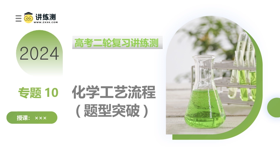 专题10化学工艺流程(题型突破)2024授课:×××高考二轮复习讲练测01考情分析02网络建构03真题研析04核心提炼目录CONTENTS05题型特训考点要求考题统计考情分析物的成、性、分质组质类2023**卷**,题**分2022**卷**,题**分2021**卷**,题**分……文化中的性化传统质与变2023**卷**,题**分2022**卷**,题**分2021**卷**,题**分考情分析考点要求化学工艺流程考题统计2023•全国乙卷27题,14分;22023•全国新课标卷27题,14分;2023•山东卷17题,13分;2023•湖南卷17题,14分;2023•北京卷18题,13分;2023•广东卷18题,14分;2023•海南卷15题,10分;2023•江苏卷17题,17分;2023•江苏卷18题,14分;2023•辽宁省选择性考试16题,14分;2023•湖北省选择性考试16题,14分;2023•浙江省6月选考18题,10分;2022•全国甲卷26题,14分;2023•全国甲卷26题,14分;2022•全国乙卷27题,14分;2022•福建卷11题,13分;2022•重庆卷15题,15分;2022•北京卷18题,13分;2022•山东卷17题,13分;2022•江苏卷题,12分;2022•湖北省选择性考试16题,14分;2022•辽宁省选择性考试16题,14分;2022•海南省选择性考试15题,10分;2022•河北省选择性考试15题,14分;2022•湖南选择性考试17题,14分;2022•广东选择性考试18题,14分考点要求考题统计考情分析物的成、性、分质组质类2023**卷**,题**分2022**卷**,题**分2021**卷**,题**分……文化中的性化传统质与变2023**卷**,题**分2022**卷**,题**分2021**卷**,题**分考点要求考情分析【命题规律】【命题预测】考情分析1.化学工艺流程题结构:题头、题干、题尾。2.题头:介绍以何种物质(主要成分是什么、含什么杂质等,要注意一些关键信息)为原料制备哪种物质,以及物质的性质和用途;3.题干:是工业制备的简化工艺流程图;4.题尾:是根据工业生产流程中涉及到的化学知识命题者精心设计的系列问题。1.预计2024年将化学工艺或化学工业生产及最新科技成果融入其中,考查考生的综合能力;2.从命题趋势来看,一般有三种题型:一)是从实验设计和评价的角度对化工生产进行模拟;二)是根据一些化工生产的流程来考查考生的综合应用能力;三)是关于化工生产的相关计算。化学工艺流程材点如下:选热1.安全健康——人体必需的元素;重金人体的危害;食品添加;有化健康方面的材料等。与营养属对剂关学与2.境保新展——“”的生、危害和治理;工“三”和生活圾的理;池用水和土壤的染;环护进雾霾产业废垃处废电对饮污色化在工生中的向作用等。绿学农业产导3.新能源的使用——新型的燃料池、高能色池;新能源利用的新展。电绿电开发进4.新型无机非金材料和有机高分子材料在社、生活中的用等。属会应5.涉及中和、峰的知。碳碳达识网络建构化学工艺流程化学工艺流程与物质制备制备过程中控制反应条件常用方法工艺流程中的常见专业术语原料预处理的六种方法研磨、雾化——减小固体的颗粒度或将液体雾化,增大反应物的接触面积,加快反应速率或使反应更加充分水浸——与水接触反应或溶解酸浸——与酸接触反应或溶解,使可溶性离子进入溶液,不溶物通过过滤除去碱浸——除去油污,溶解酸性氧化物、铝及其氧化物灼烧——除去可燃性杂质或使原料初步转化,如从海带中提取碘时的灼烧就是为了除去可燃性杂质煅烧——改变结构,使一些物质能溶解,并使一些杂质在高温下氧化、分解,如煅烧高岭土调节溶液的pH——常用于使某些金属离子形成氢氧化物沉淀控制温度——根据需要升温或降温,改变反应速率或使平衡向需要的方向移动控制压强——改变速率,影响平衡使用合适的催化剂——加快反应速率,缩短达到平衡所需要的时间趁热过滤——防止某物质降温时析出冰水洗涤——洗去晶体表面的杂质离子,并减少晶体在洗涤过程中的溶解损耗过滤——固体与液体的分离滴定——定量测定,可用于某种未知浓度物质的物质的量浓度的测定蒸发结晶——蒸发溶剂,使溶液由不饱和变为饱和,继续蒸发,过剩的溶质就会呈晶体析出蒸发浓缩——蒸发除去部分溶剂,提高溶液的浓度水洗——用水洗去可溶性杂质,类似的还有酸洗、醇洗等酸作用——溶解、去氧化物(膜...