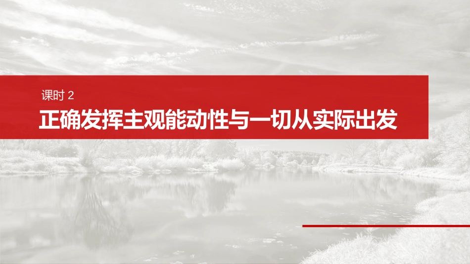 探究世界的本质第十八课正确发挥主观能动性与一切从实际出发课时2内容索引正确发挥主观能动性核心考点一课时精练一切从实际出发,实事求是核心考点二><核心考点一正确发挥主观能动性核心知识精讲1.正确发挥主观能动性表现世界认识意活具有目的性、自性、能造识动觉选择动创性,不可以事物的外部象,而且能它仅认识现把握深藏于事物部的本和律够内质规改造世界意可以能地指人改造世界,即通识动导们过实把念的西成的西,造出符合践观东变现实东创人的目的的客事物观前提件条尊重客律观规尊重客律是正确主能性的前提件。意观规发挥观动条识的能性受到客律的制。只有符合客律的正动观规约观规确意,才能有效能作用,正确指人的识发挥动导们实践,改造世界的期目;背客律的意,实现预标违观规错误识致的失,事物的展生阻碍作用会导实践败会对发产提醒目的性重于行目、方式和步的确定;自性强侧动标骤觉选择调象的;能造性突出反映的程度认识对选择动创则(象本现与质)和跨度时间(去、前和未过当来)。正确区分意识的反作用、意识的能动作用、主观能动性归纳提升意的反作用识意的能作用识动主能性观动涵内不同性的意质识对改造客世界的指观作用导人在意指下们识导能地世界和动认识改造世界“想”“做”“精神状态”系联意的反作用包含于意的能作用,是能作用的第二识识动动方面。意的能作用、意的反作用包含于主能性,识动识观动是主能性的表观动现影响主能性观动>意的能作用识动>意的反作用识2.尊重客观规律与发挥主观能动性的关系(1)尊重客律是正确主能性的前提件。意的能性观规发挥观动条识动受到客律的制。观规约(2)充分主能性是和利用客律的必要件。人可以发挥观动认识观规条在和把握律的基上,根据律生作用的件和形式利用认识规础规发条律,改造客世界,造福人。规观类(3)持主能性尊重客律相一。要把主能坚发挥观动与观规统发挥观动性和尊重客律合起,把高度的革命情同踏的科观规结来热严谨实学度合起。态结来提醒把主能性和尊重客律合起,要反发挥观动观规结来对两种错误向。一是倾“宿命论”,夸大律的客性,人在律面前规观认为规无能力;二是为“唯意志论”,夸大人的主能性,忽律观动视规的客性。观1.意可以促事物的展。识进发正:纠正确的意促事物的展,的意阻碍事物的展。识进发错误识发2.意能直接改造客世界,具有直接性。识够观现实正:纠意改造客世界的指作用必通,不能直接作用于识对观导须过实践客事物,不具有直接性;具有直接性。观现实实践现实微点澄清3.客律和主能性相互制。观规观动约正:纠客律制人的主能性,人的主能性不能制客律。观规约观动观动约观规4.尊重客律要以主能性前提。观规发挥观动为正:纠主能性要以尊重客律前提。发挥观动观规为命题方向探究考向一意识活动的特点典例1(2022·广高考东)苦瓜味苦性寒,是一消暑的食材。代屈大种清热清均在《广新》中价苦瓜:东语这样评“他物煮之,他物弗苦,自苦不以苦人,杂有君子之德焉。”苦瓜这种“不己苦他物传与”的特点,使其得了“君子菜”的雅。材料可以看出号从①事物是各念的集合种观②意事物的反映具有性和造性识对选择创③人可以根据事物固有的系建立新的系联联④掌握事物的特性是意活的最目的识动终A.①②B.①④C.②③D.③④√材料体了唯物主的哲,而现义学观“事物是各念的集合种观”反映的是主唯心主,故观义①排除。意活的最目的是指,故识动终导实践④排除。故本题选C。考向二正确发挥主观能动性典例2(2023·宁高考辽)“春分之日,玄至鸟”(《逸周书·时训解》)。在周代,古人就已靠察燕子等候春的确定、经观鸟归时间来节气。中原地的燕子多是在春分前后回筑巢育,周天子便在规划农时区飞雏春分之日祭祀神,祈求子繁茂。由此可灵孙见①人能借察燕春到的系把握自然化律观来与间关变规②依据律的去于的耕活对规认识规划农时属实际农动③燕子繁茂相系是客象反映的果将来与孙联对观对结④把握燕人活的系是了人自然和来与动联为实现与谐A.①③B.①④C.②③D.②④√在周代,古人就已靠察燕子等候春的确定、经观鸟归时间来节气规划农,明人能借察燕春到的系把握自然化律,时说观来与间关变规①符合意。...