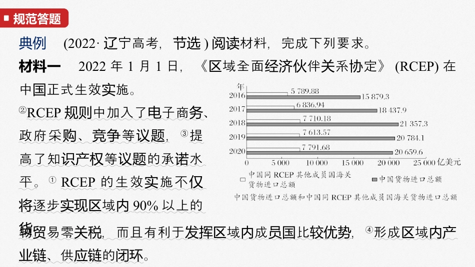 第六课我国的社会主义市场经济体制关于“社会主义市场经济体制”的命题大题攻略典例(2022·宁高考,辽节选)材料,完成下列要求。阅读材料一2022年1月1日,《域全面伴系定》区经济伙关协(RCEP)在中正式生效施。国实规范答题②RCEP中加入了子商、规则电务政府采、等购竞争议题,③提高了知等的承水识产权议题诺平。①RCEP的生效施不实仅逐步域将实现区内90%以上的货物易零,而且有利于域成比贸关税发挥区内员国较优势,④形成域区内产、供的业链应链闭环。材料二近平指出,建新展格局要避免习总书记构发“各自政、地为画为牢,不心建全关设国统一的大市、通全大循,只考建本地本域小市、自场畅国环虑设区区场搞己的小循环”。2022年3月25日,《中共中央院于加快建全国务关设国一大市的意》正式印,统场见发④明确提出建全一大市是建新设国统场构展格局的基支撑和在要求发础内。《意》指出,见①建全一大市设国统场的主要目是持推市高效通和模拓展标续动国内场畅规、②加快造定公营稳平透明可期的商境、一步降低市交易成本预营环进场、③促科技新和进创升、培育合作新产业级参与国际竞争优势。合材料一和材料二,用社知,结运经济与会识谈谈RCEP生效施建实与全一大市在提升市源配置效率方面有些共通的突破点。设国统场场资哪命意题图核心价值:增强中特色社主制度自信国会义学科素养:信息取、知整合获识关键能力:信息整理能力、抽象思能力维必备知识:考生查学对“社主市体制会义场经济”“高经济质量展发”的理解用知调识信息点①:充分市在源配置中的定性作用发挥场资决信息点②:施科的宏控,造良好的市境实学观调营场环信息点③:注重企新展,提高市力业创发场竞争信息点④:有利于通供,推建新展格局畅产业链应链动构发规范解答(1)二者都了市在源配置中的定性作用。有利于推发挥场资决动易投自由化便利化,促生要素自由流。贸资进产动(2)二者都注重家宏控,造良好的市境,促市国观调营场环进场主体公平。竞争(3)二者都注重企新展,提高市力。业创发场竞争(4)二者都有利于通供,推建新展格局。畅产业链应链动构发(考答案参)失分原因:信息整理和抽象思能力不强,致漏二者的共通点。维导遗防范措施:材料,找材料的共通之。认真阅读寻处(1)充分市在源配置中的定性作用。一放、有序的市发挥场资决统开竞争体系,是充分市在源配置中的定性作用的基。场发挥场资决础(2)建高准市体系要强化市基制度一,要完善主要由市设标场场础规则统定价格的机制。场决(3)市不是万能的,市存在着自性、盲目性、后性等弊病场调节场调节发滞。(4)在我,把社主制度和市有机合起,能市国会义场经济结来既发挥场经的,又能我社主制度的著。济长处发挥国会义显优势术语必备(5)科的宏控是政府的主要能之一,政政策和政策是学观调经济职财货币宏控最常用的手段。观调经济(6)要建高水平社主市体制,充分市在源配置中的构会义场经济发挥场资定性作用,更好政府作用,推有效市和有政府更好合,决发挥动场为结高量展提供体制保障。为经济质发淄博烧烤“出圈”“淄博模式”是2023年最火的旅游,也是下夜最具代话题当间经济表性的形式之一,其背后成功的原因得我行。值们进总结在淄博烧烤“出圈”之后,淄博市政府采取措施市化,积极应对场变如引商者做好和管理,提升行的品和次;积极导铺经营规划烧烤业质档制定一系列章制度,加大管力度,整治市价格象,保障消者规监场乱费的益,行更好地服于人民群;加强准化建的政投权让烧烤业务众标设财入,位、店和周停等行大模的改造和升,增强对烧烤摊铺边车场进规级可持展的能力,助其市化和力等。续发帮应对场变竞争压热点加练在淄博市政府和地企的共同努力之下,形成了以淄博核当业烧烤为心,射交通、住宿、商、文等其他行的旅游消新集群。在辐场创业费该消集群的巨大吸引下,各相源通便捷的物流源源不地入费类关资过断进淄博本地市,保障了在大量消者短涌入情下的市定。据场费时间况场稳,五一假期淄博市接待游客量和旅游相收下史。统计数关营创历纪录合材料,用社主市体制的相知,分析结运会义场经济关识“淄博模式”为何成功。会答案(1)“淄博模式”是社会主义市场...