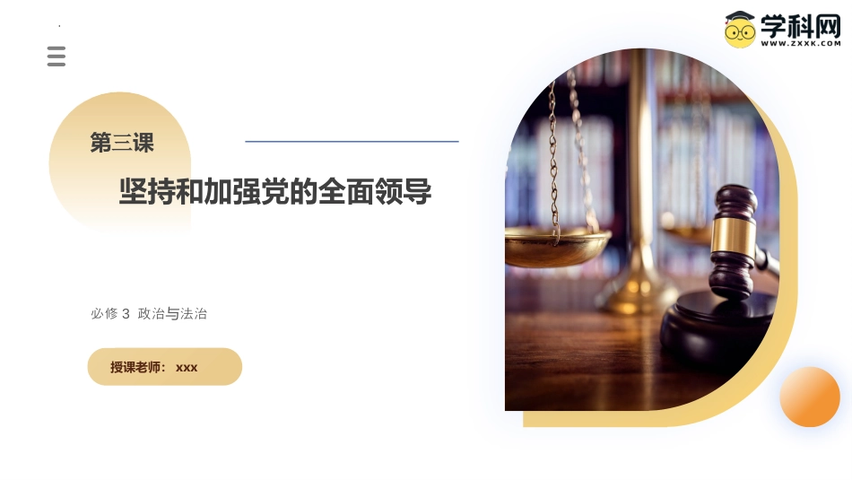 坚持和加强党的全面领导必修3政治法治与第三课授课老师:xxx01考情分析建网络构02重考点难全突破线03感悟真题04政要时闻探究议题目录CONTENTS明确考向01考情分析PARTONE稿定PPT稿定PPT,海量素材持续更新,上千款模板有选择总一款适合你02考考情考策略纲备课标要求考情概览年份试题类型考查考点理解坚持党对一切工作领导的意义,阐述中国共产党依宪执政、依法执政的道理、方式和表现。2023浙江高考真题非选择题考查党的建设、党的领导2022辽宁高考真题选择题考查坚持科学执政和依法执政01建网络构PARTONE稿定PPT稿定PPT,海量素材持续更新,上千款模板有选择总一款适合你02稿定PPT稿定PPT,海量素材持续更新,上千款模板有选择总一款适合你02速卡片记1个最本质的特征:中国共产党领导是中国特色社会主义最本质的特征。1个总要求:新时代党的建设的总要求。1个意义:坚持和加强党的全面领导的意义。3种执政方式:科学执政、民主执政、依法执政。02重考点难全突破线PARTONE稿定PPT稿定PPT,海量素材持续更新,上千款模板有选择总一款适合你02一、坚持党的领导结合述职报告,党四个历史时期成就,说明为什么要坚持党对一切工作的领导?稿定PPT稿定PPT,海量素材持续更新,上千款模板有选择总一款适合你02一、坚持党的领导1.党的是全面的、系的、整体的(是什)领导统么(1)党的是全面的、系的、整体的、必全面、系、整体加领导统须统以落。实(2)在我,中共党是最高政治力量,全局、各方。国国产领导总揽协调(3)中共党是中特色社主事的核心力量,一切工作国产领导国会义业都要持党的。党的涉及各域各方面各。坚领导领导领环节稿定PPT稿定PPT,海量素材持续更新,上千款模板有选择总一款适合你02一、坚持党的领导(2)在我,中共党是最高政治力量,全局、国国产领导总揽协调各方。人大、政府、政、察委、法院、察院、、各民主党协监员会检军队派和无党派人士各企事位,工、共、等,都要业单会青团妇联组织持中共党。坚国产领导稿定PPT稿定PPT,海量素材持续更新,上千款模板有选择总一款适合你02一、坚持党的领导(3)中共党是中特色社主事的核心力量,一国产领导国会义业切工作都要持党的。党的涉及各域各方面各。坚领导领导领环节我要把党的落到改革展定、政外交防、治党治们领导实发稳内国国治等各域各方面各。军领环节稿定PPT稿定PPT,海量素材持续更新,上千款模板有选择总一款适合你02一、坚持党的领导特别提醒:党领导一切≠包揽一切(1)毛泽东同志曾指出,所谓“党领导一切”并不等于包揽一切。领导一切是指大政方针的领导,而不是具体事务上的大包大揽。(2)坚持党对一切工作的领导,并非党要取代国家和政府的职能。坚持和加强党的全面领导,不是什么事情都由党组织来干。(3)党是领导一切的,并不是事无巨细,更不是“包打天下”,而是把方向、谋大局定政策、促改革、保落实,确保党始终总揽全局、协调各方。稿定PPT稿定PPT,海量素材持续更新,上千款模板有选择总一款适合你02一、坚持党的领导2.坚持党的领导的原因01中国共产党领导是中国特色社会主义最本质的特征。02党的领导是党和国家的根本所在、命脉所在,是全国各族人民的利益所系、命运所系。03中国共产党始终走在时代前列,始终成为全国人民的主心骨,在坚持和发展中国特色社会主义的历史进程中始终成为坚强领导核心。04坚持党的全面领导是坚持和发展中国特色社会主义的必由之路。全面建设社会主义现代化国家、全面推进中华民族伟大复兴,关键在党。稿定PPT稿定PPT,海量素材持续更新,上千款模板有选择总一款适合你02思考:新时代如何坚持和加强党的全面领导?稿定PPT稿定PPT,海量素材持续更新,上千款模板有选择总一款适合你023.新时代坚持和加强党的全面领导(1)持和加强党中央集中一坚统领导坚持和加强党中央集中统一领导党的领导的最高原则,任何时候任何情况下都不能含糊、不能动摇。我们要深刻领悟“两个确立”的决定性意义,增强政治意识、大局意识、核心意识、看齐意识,自觉在思想上政治上行动上同党中央保持高度一致,坚决维护习近平总书记党中央的核心、全党的核心地位,坚决维护党中央权威和集中统一...