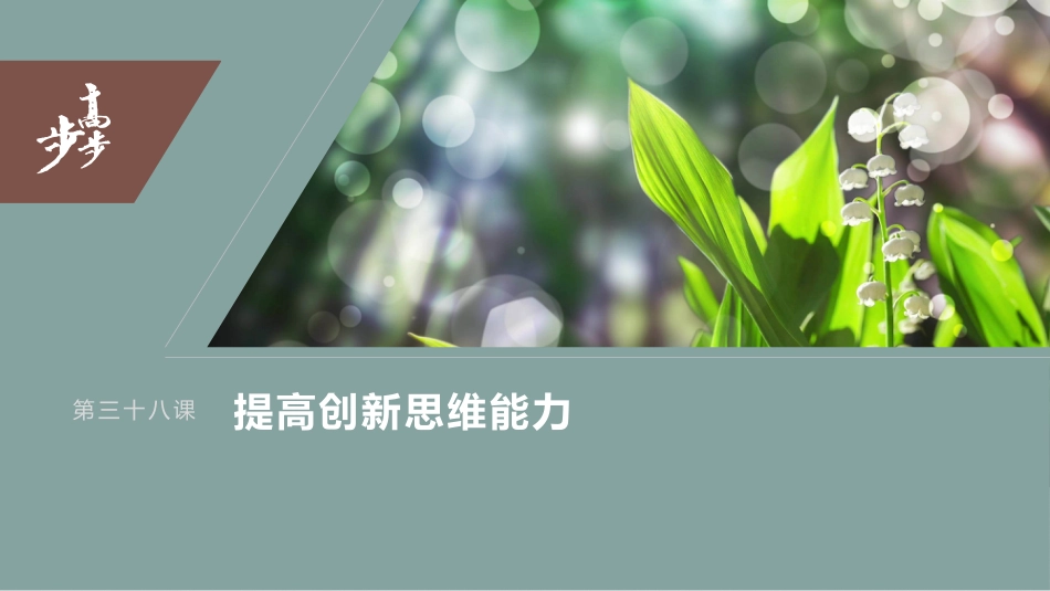 提高创新思维能力第三十八课1.体会联想思维中迁移、想象的运用;了解联想思维的方法和特点;知道迁移、想象在创新思维中的作用。2.了解发散思维中所采取的推测等方法;概括发散思维的特点;知道聚合思维和发散思维的功能。3.分析逆向思维的依据和优势;发挥正向思维和逆向思维的互补作用。体会超前思维是对常识局限性的突破和超越;把握超前思维的探索性、预测性特点;了解创造性预测事物发展态势的意义。课标要求思维导图善于想联提高创新思维能力要善于新思创维人在中破除迷信、①们实践_________,有所、有所明的思活发现发维动含义思路具有②_______,步具有③骤_______,果具有特性结独特征想思联维中不同事物的行④将记忆认识进______思与考的思活维动含义跨越的性,非制的⑤联结逻辑约_______特征⑥_____“联结”;想象“畅想”方法超越陈规多向性跨越性联结想性畅移迁多路探索提高创新思维能力合力散思发维根据已知的事物信息,不同的角度、不同的方向思考,以从求解的多性答案的思方式寻决问题样维含义聚合思维含义方法核表法、⑦检___________、暴法头脑风方法利用已有的知和,把多信息逐步引到理化的识经验众导条逻思路中,以便得出⑧辑_________的解的方案决问题有一明确的目,一切思活都要⑨个标维动围绕这个_____来进行特征用比、分析、抽象、、演、合等思方法运较归纳绎综逻辑维相得益彰逆向思维人去所把握的⑩们从过________、成要素、功能的反构结构面等,去思考、去求索,以新的目的实现创含义方法事物对________的已有行反向思考认识进已有的有事物存在的作性思考对关状态认识转换已有的有事物功能的作反向思考对关认识已有的有事物之因果系的作交性思考对关间关认识换信息交合法合乎逻辑心轴事物原理序结构顺力求超前提高创新思维能力超前思维在多角度、全方位地分析事物的史和的基历现状上,事物展的情出,和把握础从发现实况发认识事物的展,用合理的发状态运_____和想象,判事物未展的思形断来发趋势维态含义探索性、性和不确定性预测特征矛盾分析法、推理和想象、________方法有助于人能地们动_________和_________意义推理究调查研世界认识改造世界善于联想与多路探索课时1创新思维和联想思维核心考点一课时精练发散思维与聚合思维核心考点二内容索引逆向思维的含义与作用核心考点三核心考点一创新思维和联想思维1.创新思维(1)新思的涵创维内①含:新思特指人在中破除迷信、超越,有所、义创维们实践陈规发现有所明的思活。新思是合能力的体。发维动创维综现②生件:一方面,新思要以基,失去基,思产条创维实践为础实践础维陷入不切的幻想。另一方面,新思离不前人和他人已有会实际创维开对成果的承。继考点精讲夯实必备知识提醒不能求新求就是新,新思是指以新的方法认为异创创维颖独创解的思程,但是求新求不一定就是思新。决问题维过异维创(2)特征思路具有多向性思方向上看,新思常常不同的角度去思考从维创维从问题步具有跨越性骤新思不排斥一步一步的推分析,但往创维逻辑导与它往表推理步的省略或跨越现为对骤果具有特性结独人在中遇到的往往有成的答案,多们实践问题没现许不是用常方法就能解的问题规决(3)表现思路新突破看,另辟蹊想陈规问题径问题方法新不局限于常方法,敢用新手段,用新工具,因方法得规试为而事半功倍当果新结凡是新思的成果,有其新到之创维总颖独处2.联想思维(1)含:想思就是中不同事物的行思考的义联维将记忆对认识进联结与思活。想思是事物之普遍系的反映。维动联维对间联(2)特征跨越的性联结形式上看,想思可以相象的从联维既将对关对认识联系在一起,也可以看似不相象的系在将对关对认识联一起,其方式具有非的跨越性联结连续非制的逻辑约想性畅想思的联维“想畅”,包含着想、想象甚至是幻想构(3)依据准标思在想的维联时“联结”速度和“想畅”得到的果的量,是衡结数量想思水平和能力的重要依据联维途径自地行想思,在和生活中地用想思觉进联维训练学习积极运联,是提高想思水平和能力的重要途维联维径(4)方法移迁想象本质想思的联维“联结”方式想思的联维“想畅”方式含义不同象的性、作用将认识对质等行位置功能...