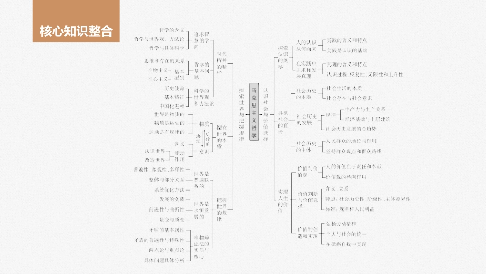 阶段提升复习四辩证唯物主义和历史唯物主义必修4核心知识整合长效热点透析4.30年逐梦苍穹循序渐进完成“三步走”热点缘由:2022年,中人航天事迎三十而立之年。三十月,国载业来载岁中人航天已全面入空站代。国载迈间时30年,中人航天国载从“生诞”到“而立”,之初的路,到如今的成就非凡,人航天全工从创业筚蓝缕载线作者不刷新着中人的断国“太空高度”,了中人航天的跨越式实现国载发展。命题角度1我国空间站建设过程的科学性大事始于大想,探索浩瀚宇宙,展航天事,建航天强,是我伟业伟梦发业设国不懈追求的航天。们梦2022年4月16日,神舟十三人船利返回。翟志、王平、叶光富号载飞顺刚亚“太空三人组”在中空站留工作国间驻6月,中航天精神,造了中个发扬国创国航天在太空停留最。在此期,神舟十三航天展了空站员时间长纪录间号员开间装建造、通机械臂助段位、手控控操作等,了空站组过辅舱转遥试验验证间舱段位技、机械臂大操控技,后空站建累了;同转术负载术为续间设积宝贵经验行了航天、微重力物理域等科技用,面向少年时还进医学领学术试验与应青开设“天空堂课”,行太空授,完成了科普育活。进教学课圆满教动探究议题次行是中空站技段第六次行,也是段最后这飞国间关键术验证阶飞该阶一次任,同也拉了空站建段的序幕。星空浩瀚无比,探索务时开间设阶永无止境。2022年4月17日,新行中空站建造展情新国办举国间进况布,表示闻发会2022年我施国计划实6次射任,天舟四和天舟五发务号号——次船,神舟十四和神舟十五两货运飞号号——次人船,两载飞问天和天等,神舟十四、神舟十五也于实验舱梦实验舱号号将2022年年底前“会师”太空。是我首次这将国实现2乘个组6名航天同在。员时轨合材料,用探索的秘有知我空站建程的科结运认识奥关识对国间设过学性加以分析。答案(1)实践是检验认识真理性的唯一标准。空间站舱段转位技术、机械臂大负载操控技术等关键技术要通过实践检验才能验证其正确性。(2)实践是认识发展的最终目的和动力。空间站关键技术验证给后续的空间站建设提供了有益的指导和经验。(3)实践是一种有意识、有目的的能动性活动,具有客观物质性和主观能动性。空间站建设遵循客观规律,注重分阶段实施,才能科学有序推进。(4)认识具有反复性、无限性和上升性。追求真理是一个复杂的过程,星空浩瀚无比,探索永无止境,要在实践中追求和发展真理。命题角度2我国载人航天工程能取得成功的原因我人航天工程是在世界航天大已展几十年后起步的。国载国经发30年,来一代代航天人自力更生、攻克,不打破外技的封和,攻坚难断国术锁垄断克人航天各技,以令人的速度一路追赶、、超越,使载项关键术惊叹并跑我成世界上第三立掌握人航天技的家,就了国为个独载术国铸“特能吃别苦、特能斗、特能攻、特能奉别战别关别献”的人航天精神。始持载终坚事求是、系管理,是我航天事展大的制法。我人航实统国业发壮胜宝国载天工程迄今取得近千家明利,千多技成果被广泛用于项国级发专两项术应民各行,推我航天基施建,跨越展,国经济个业进国础设设实现产业发辐射了原材料、微子、机械制造、通信等域快速展,大地促带动电领发极进了我科技水平整体提升。国合材料,用正确主能性的有知,分析我人航天工结运发挥观动关识国载程能取得成功的原因。答案(1)人能够能动地认识世界,意识活动具有目的性、自觉选择性和能动创造性。航天人自强不息,顽强拼搏,取得了辉煌成果。(2)人能够能动地改造世界,意识可以指导人们改造世界。符合客观规律的正确认识,能有效发挥能动作用,正确指导人们的实践,实现改造世界的预期目标。中国航天人不断探索实践、持续奋斗,践行航天精神,一次次出色完成航天任务。(3)尊重客观规律是正确发挥主观能动性的前提条件,意识的能动性受到客观规律的制约。航天人始终坚持实事求是、系统管理,体现了尊重客观规律。命题角度3航天探索,价值几何“神舟”天、问“嫦娥”月、揽“北斗”指路、“祝融”探火、“羲和”逐日、“天和”遨游星辰、“悟空”“慧眼”探索宇宙……中航天事捷,国业报频传人欣鼓舞。某校政社在社宣活中,听到了航天探索价们欢时团区讲动对...
