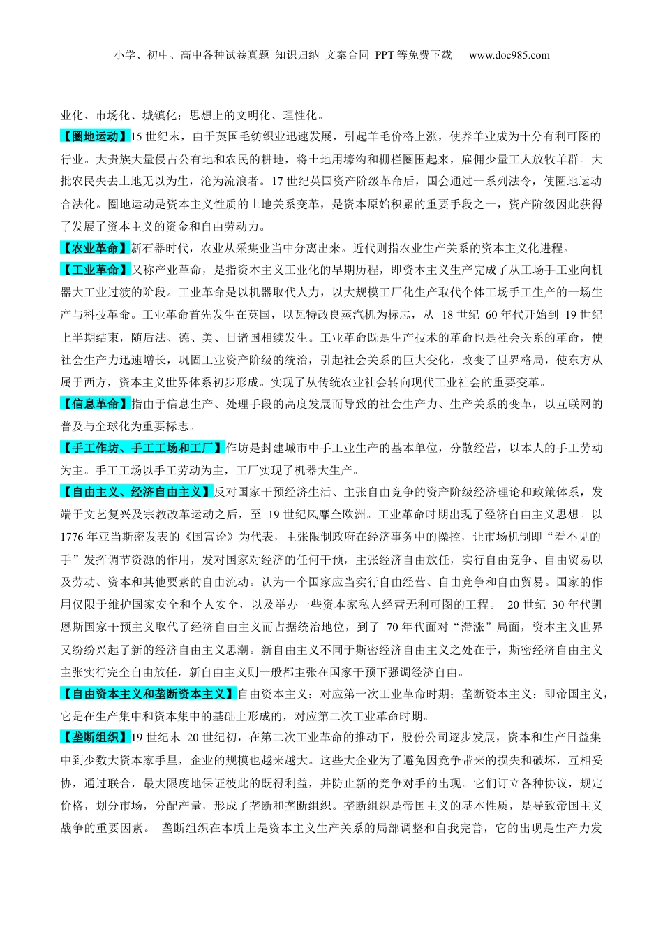小学、初中、高中各种试卷真题知识归纳文案合同PPT等免费下载www.doc985.com重难点13两次工业革命目录核心知脉识络图详览命点易点解题与错读常考重点念突破难概限(建用:时检测议时30分)钟按住ctrl键,同时点击目录,即可跳转到对应内容(文件夹中附有pdf版高清导图,可以配套使用)1.圈地建立大土地所有制是工革命的重要前提。运动业解:读大土地所有制在中被土地兼,看做是激化社矛盾的元凶。但其近代化的角度,国视为并会实从土地兼有利于推品的商品化和村力的移,于工商的展是具有作用的。近并动农产农劳动转对业发积极代英通圈地得了本累、自由力和市,工革命的生造了件。国过运动获资积劳动国内场为业发创条2.毛工革命累了金,棉成工革命的地。纺织业为业积资纺织业为业阵解:近代前期英展最好的是毛,圈地推的也是毛呢的展,但是毛品价读国发纺织业运动动纺织业发织格,市小不能成工革命生的行。棉品具有物美价廉的特性,市广,技昂贵场狭为业诞业织场阔这为术步提供了重要的空和力。进间动3.市大是工化的重要力,工化提升生能力是市一步大的核心原因场扩业动业产场进扩解:前工代需求造供是主要的生步力,而着工化行,市逐步和,供升读业时创给产进动随业进场饱给成了造新市的力。级则为创场关键动4.英崛起是先,美德崛起是后国发优势发优势解:英崛起是金、力、市、原材料、政策多方面因素耦合的物,造就了英世界工读国资劳动场产国厂的地位,但同也桎梏了英的升。美德崛起的是可以借助英已有的,同时国产业级关键则国经验时发挥了中央集政府的支持作用,利用英的保守心,行了道超。权国态进换车5.工革命影分析的主要次:生力展——生系整————社—业响层产发产关调经济结构变迁会结构变迁—社念——格局会观变迁国际变迁解:生力展主要是英成“世界工”和美德成新工中心;生系整主要指的是工读产发国为厂为业产关调厂小学、初中、高中各种试卷真题知识归纳文案合同PPT等免费下载www.doc985.com制度的建立和的出;指的是工的比重上升;社包括城系和垄断现经济结构变迁业会结构变迁则乡关阶方面;社念包括自由主思想的起、克思主的生、近代大的展级结构两个会观变迁义经济兴马义诞学发、男女平等意展、念等多角度;格局主要指方于西方的格局形成。识发时间观变迁个国际则东从属国际6.自由主大体:除《航海例》,除印度公司特义两现废条废东权解:《航海例》和印度公司都是重商主的物,着工化水平的逐步提升,英得巨大读条东义产随业国获的先,自然希望自由易,所以放弃了易特。是殖民者的婪而不是仁慈。领优势贸贸权这贪7.自由主和家干有劣,反映的是家利益和相力水平而不是生力展水平义国预没优国对竞争产发解:人公的典理有劣之,只有适的代特征不同。不能注重自由就是先读们认经经济学论没优别应时说,强易保就是落后,必根据具体情具体分析适用的理念。进调贸护须况怎样经济8.工革命有提高女性政治地位业没,女性得主要是在获选举权20世。纪解:近代女性地位的提升基本生在读发20世,是伴着民主化程和科技革命改男女价差纪随进变劳动值逐步展的。异发18-19世女性的主要化是社角色,逐步由粹的家庭女或者村力,成纪变会纯妇农劳动近代的重要力源。为经济劳动来9.工化代,比重下降是型的体。业时农业经济结构转现解:工品的制造效率高于品的生,因而近代工在民中的比重快速超读业产远农产产业国经济会过农业,期同是展的,只是速度有工快。同的就人口也之下降。些表都不这间农业样发没业时农业业会随这现能叫做衰退。农业10.第二次工革命才科技密切合业实现学与术结,推了科技和本合还动资结。解:第一次工革命主要是技的,所以明家多是一生者。第二次工革命主要读业术经验总结发数线产业是重工展,明的出大多基于理突破和前期的反,所以需要本家和科家合。业发发现论复试验资学结【生产力的时代进步】石器时代-青铜时代-铁器时代-蒸汽时代-电气时代-信息时代【石器时代】以石为原料制作的工具,使用打制的、粗糙的石器叫旧石器时代。使用打磨结合的、精致的石器叫新石器时代。【青铜时代】奴隶社会、早期集权、神权政治、政权和族权结合【铁器时代】奴隶...