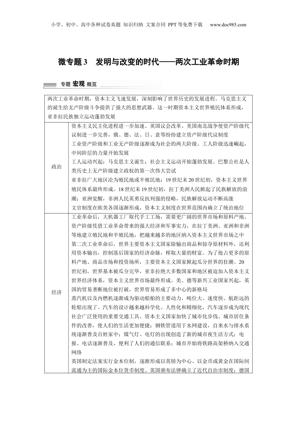 2024年新高考历史资料 第一部分 板块三 板块综合提升三 微专题3 发明与改变的时代——两次工业革命时期.docx本文件免费下载 【共3页】