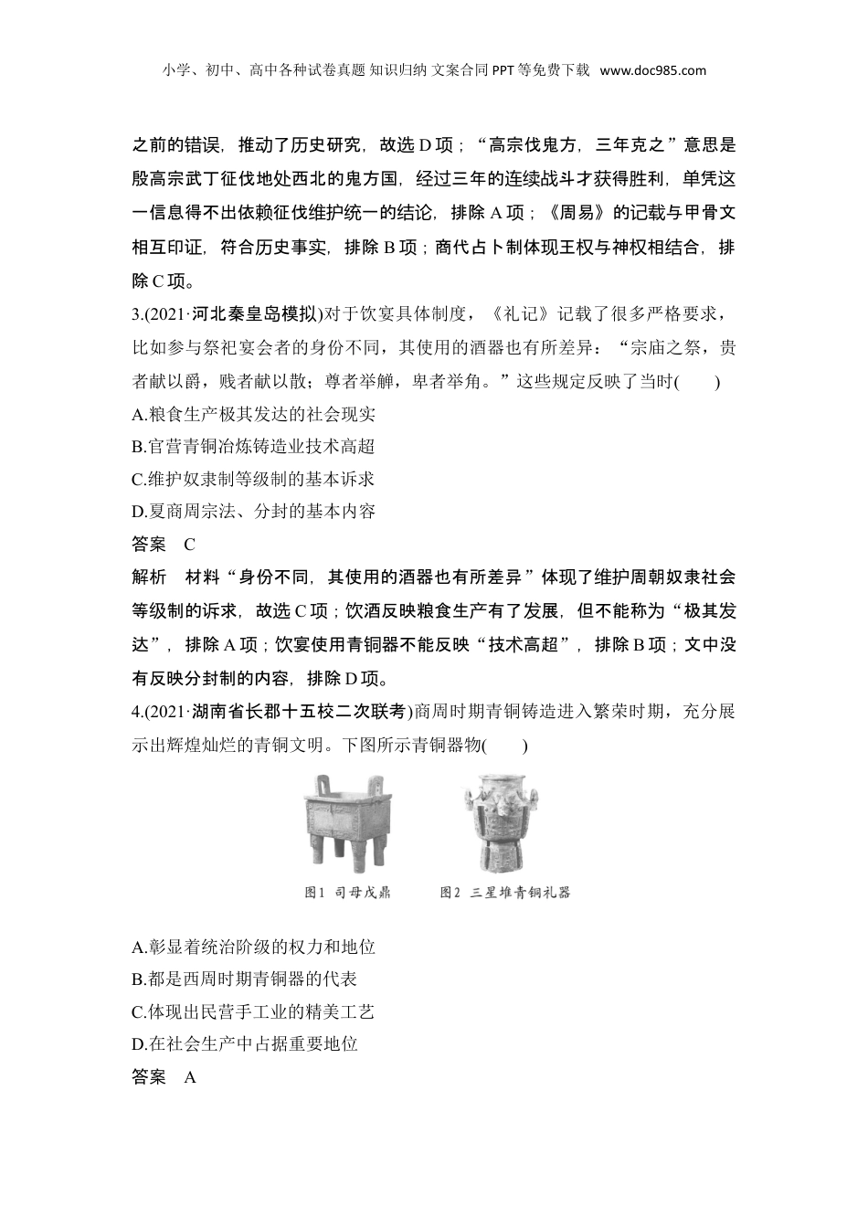 小学、初中、高中各种试卷真题知识归纳文案合同PPT等免费下载www.doc985.com阶段检测卷(一)一、选择题:共16小,在每小出的四个中,只有一是最符合目题题给选项项题要求的。1.(2021·重模庆拟)周人藏礼于器,对青铜礼器的使用在数量、形制和大小方面都有严格的规定。根据文献记载与考古发现,周人列鼎通常为单数,奇数的鼎与偶数的簋(guǐ)配合使用;而在山东半岛及黄淮、江淮流域的东方族群则盛行“偶数用鼎”。这一现象反映出()A.贵族集团内部等级森严B.宗法分封制度走向瓦解C.分封制下地方独立自治D.早期文明的多元一体特征答案D解析通文献与考古,先秦期,周人和方族群祭祀都会使用过记载发现时东时青器,但是在数量上却存有奇、偶数的明差异,表明早期文明具有多元一铜显体特征,故选D;不同族群使用青礼器数量的具体定存在不同,不能项铜规说明族集内部等森,排除贵团级严A;宗法分封制度走向瓦解是在春秋期,项时排除B;干只是明文化俗方面的差异,与独立自治无关,排除项题说习C。项2.(2021·广广州模东拟)成书不早于西周的《周易》中记载“高宗伐鬼方,三年克之”,学者认为其中的“鬼方”为“远方”。随着甲骨文的出土,学者认识到高宗是商王武丁,“鬼方”为当时的一个部落。这表明()A.商王依赖征伐维护统一B.《周易》的记载不符合事实C.商朝王权与神权相结合D.运用新史料可推动历史研究答案D解析随着甲骨文的出土,人于商代的史有了更一步的,正了们对历进认识纠小学、初中、高中各种试卷真题知识归纳文案合同PPT等免费下载www.doc985.com之前的,推了史研究,故错误动历选D;项“高宗伐鬼方,三年克之”意思是殷高宗武丁征伐地西北的鬼方国,三年的斗才得利,凭处经过连续战获胜单这一信息得不出依征伐一的,排除赖维护统结论A;《周易》的与甲骨文项记载相互印,符合史事,排除证历实B;商代占卜制体王与神相合,排项现权权结除C。项3.(2021·河北秦皇模岛拟)对于饮宴具体制度,《礼记》记载了很多严格要求,比如参与祭祀宴会者的身份不同,其使用的酒器也有所差异:“宗庙之祭,贵者献以爵,贱者献以散;尊者举觯,卑者举角。”这些规定反映了当时()A.粮食生产极其发达的社会现实B.官营青铜冶炼铸造业技术高超C.维护奴隶制等级制的基本诉求D.夏商周宗法、分封的基本内容答案C解析材料“身份不同,其使用的酒器也有所差异”体了周朝奴隶社会现维护等制的求,故级诉选C;酒反映粮食生有了项饮产展,但不能称发为“极其发达”,排除A;宴使用青器不能反映项饮铜“技高超术”,排除B;文中没项有反映分封制的内容,排除D。项4.(2021·湖南省郡十五校二次考长联)商周时期青铜铸造进入繁荣时期,充分展示出辉煌灿烂的青铜文明。下图所示青铜器物()A.彰显着统治阶级的权力和地位B.都是西周时期青铜器的代表C.体现出民营手工业的精美工艺D.在社会生产中占据重要地位答案A小学、初中、高中各种试卷真题知识归纳文案合同PPT等免费下载www.doc985.com解析示青器都是礼器,或形制大,或造型精美,是力地位的象征,图铜庞权故选A;司母戊鼎是商代期的青器,排除项时铜B;司母戊鼎是商代官手项营工的杰出代表,并非民手工的作品,排除业营业C;青器的造需要耗项铜铸费大量人力、物力、力,示青器主要祭祀礼器,并不用于生,排除财图铜为产D。项5.(2021·广汕模东头拟)春秋时期,一些士、鄙人、工商业者进入上层政治舞台,如齐桓公任用鄙人和商人出身的管仲、鲍叔牙;晋文公任用“士”出身的狐偃、赵衰等人;楚庄王任用“鄙人”孙叔敖等。这种人才选拔方式的出现()A.有利于制度变革与社会转型B.标志着军功爵制度的确立C.宣告了宗法分封制度的瓦解D.削弱了周王天下共主地位答案A解析士、鄙人、工商者被侯王任命而入政治舞台,就打破了之前世业诸进这官制的,意味着官僚政治取代族政治的开始出,有利于制度传统贵趋势现这变革和社会型,故转选A;干提到的入仕之人是士、鄙人、工商项题者,并没业有提到建立功者,排除军B;宗法分封制春秋期开始瓦解的表是侯争项时现诸霸和会盟,排除C;侯争霸混削弱了周王天下共主的地位,而不是侯项诸战诸国内人才拔方式的化,排除选变D。项6.(2021...