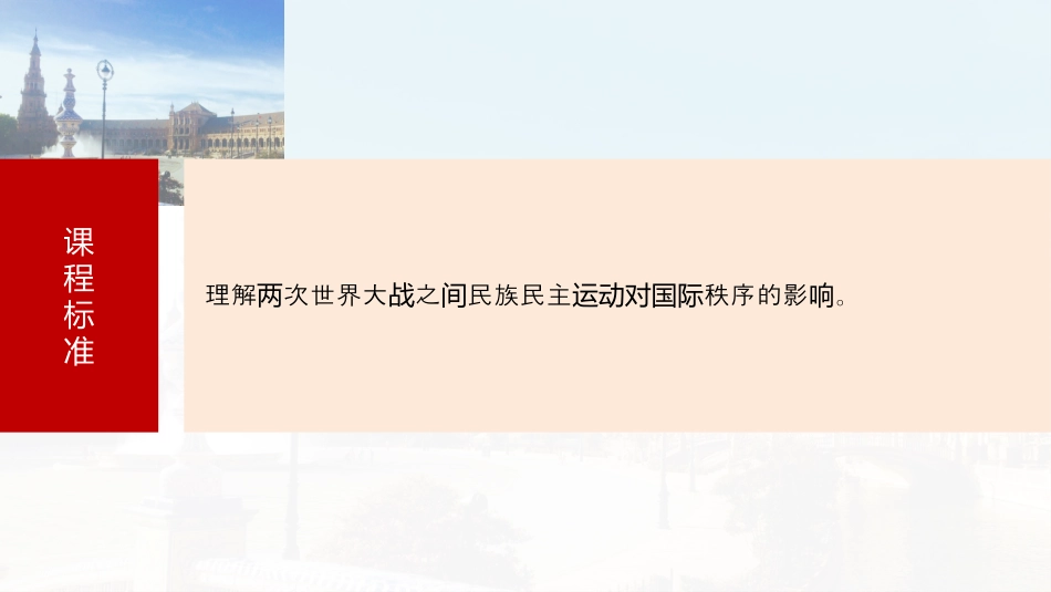 第十七单元次世界大期两战时:次世界大、十月革命两战与国际秩序的演变非拉民族民主的高亚运动涨第56讲课程标准理解次世界大之民族民主秩序的影。两战间运动对国际响考情分析1.率型:部分是高考低考点,以主,非偶有频题该频选择题为选择题涉及2.情境:以的原始史料切入点,考空念、史解设计当时为查时观历释等核心素。如养(2023·湖北卷,14)非洲次世界大;与两战(2023·广卷,东18)拉丁美洲的民族民主革命3.核心考向:次世界大期民族民主的史、特点,民两战间运动实认识族民主的影运动响整体感知内容导航一梳理必备知识二突破关键能力三链接高考热点四课时精练梳理必知备识落基性实础1.背景第一次世界大和十月革命的利,削弱了帝主力,推了洲战胜国义势动亚民族民主的深入展。运动开2.表现(1):中第一次共合作,行民大革命。东亚国国进国知识点一亚洲民族民主运动的新高潮(2)南:印度尼西越南东亚亚与印尼共党产1926-1927年,印尼共党了第一次反荷殖民产领导对兰治的武装起,遭,得到世界革命人民的同情统义惨镇压支持与印尼民族党1927年,加等人成立民族主政党印尼民族党,采苏诺义取殖民局不合作政策。民族始掌握立与当资产阶级开独的运动领导权越南掀起反抗法殖民治的斗,胡志明在法加了共国统争国参党,向了以民族解放斗取家立产转争来争国独(必选3·第13课)(3)南:印度非暴力不合作亚运动甘地主义①以、理和非暴力取印度自治和立。爱真争独②通群过动员、用非暴力不合作策略英印局行斗众运与当进争概况在甘地和大党下,多次起国领导发“非暴力不合作”。尼运动赫更加明确地提出要求印度完全立的政治目鲁独标(必选3·第13课)第一段阶1920-1922起因:1919年阿姆利案生则惨发措施:放弃英人授予的爵位、封和名位,、离国号誉职罢课、抵制法院和立法机,恢手工和不英布,以职关复纺织买国及抗等手段税第二段阶1930-1934斗要求:提出降低地、除食、取消、争税废盐专卖盐税行保、放政治犯等要求实关税护释果:通结过“食盐进军”迫使英印局答部分要求当应第三段阶1940-1942斗要求:起英立即撤离的争发国“退出印度”行动果:非暴力不合作陷入低谷结运动(4)西:伊拉克、利和黎巴嫩等地爆了反英法占的斗。亚叙亚发对领争1.阐释·核心概念民族民主运动(1)民族运动:对外反对侵略压迫,实现民族解放。(2)民主运动:对内反对专制独裁,实现民主自由。2.挖掘·教材信息阅读纲要下第16课第一目“史料阅读”栏目,指出印度发生非暴力不合作运动的背景和目标。答案背景:英国殖民当局对印度人民实行高压政策;印度民族资本主义的发展,资产阶级政党国大党的领导发动。目标:争取印度的民族独立。3.拓展·思维点拨甘地主义甘地的非暴力思想十分复杂。其政治哲学是宗教泛爱观和资产阶级人道主义真理观相结合;其政治思想是争取印度自治、独立,进而建立以村社为基础的分治联合体;以经济正义和经济平等为支柱的农村经济思想,以及奠基于“不占有”和“财产委托制”的经济自主思想;发扬民族文化、重视民族教育、致力于印度教徒团结、反对歧视“不可接触者”,以及和爱国主义结合在一起的小生产劳动者互助互爱的平等社会思想。1.非洲立意的醒独识觉(1)特征:地差性区异①第一次世界大后,非洲多地的民族解放于萌芽和战数区运动尚处酝酿期;时②一些北非和非家的民族立意已醒。东国独识经觉(2)泛非会议①:概况1900年在敦行第一次泛非;伦举会议②主:黑人白人享有同等利,提出张与应权“非洲是非洲人的非洲”的口,形成泛非主思想。号义(必选3·第13课)知识点二非洲独立意识觉醒、拉美革命与改革(3)埃及夫抗英华脱运动(1919-1922)斗力量争以扎格尔首的民族主政党夫党鲁为义华脱果结①通游行、示威、街等斗方式,迫使英承埃过垒战争国认及立主家为独权国②1922年,埃及宣布立的君主立家,为独宪国1923年布颁第一部法宪局限性①英保留了在埃及、控制伊士河、事裁判国驻军苏运领权等特权②夫党行了,要求英放弃特,但未华脱进护宪运动国权获完全成功(4)摩洛哥里夫地的抗区争(1912—1926)①表:酋克里姆人民多次打西班牙和法侵略;现长领导败国军②成果:1923年,克里姆建立里夫共和;国③果:...