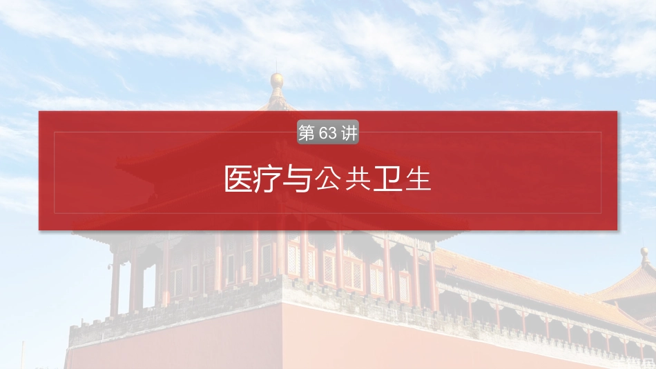 第十七单元社生活经济与会公共生医疗与卫第63讲主题概览1.史上疫病的流行及防治。古代天花、鼠疫等重大疫病人了巨大灾,历给类带来难人防治疫病行不懈的努力,各越越重公共生,逐采取一些基本公们为进国来视卫渐共生措施和手段。卫医疗2.中成就和西方的播。在中的展程中,涌了多杰出的医药医学传医药发过现许医药家,人留下了不朽的典;西方在中播和展,改中民学为们医学经医学国传发对变国的念和生活方式起了作用。众医学观积极3.代生体系的建立。第二次世界大后,多西方家代生体系现医疗卫战许国现医疗卫逐步建立和展,主要包括基本生体系、服体系、品供体系以及发医疗卫医疗务药应保障体系等;改革放后,中逐步建立中特色代生体系。医疗开国国现医疗卫内容导航一梳理必备知识二突破关键能力三链接高考热点四课时精练梳理必知备识落基性实础知识点一历史上的疫病与医学成就1.史上的疫病历(1)表现①天花古埃及期时席卷尼河沿岸,法老拉美西斯五世罹患天花罗18世纪肆虐洲,彼得二世、路易十五等君主死于天花欧中朝国清康煕皇帝得天花;被天花染的普通百姓不其过传计数②鼠疫6世,地中海沿岸暴鼠疫,造成拜占庭帝人口一半。纪时发国锐减14世,洲鼠疫大流行,致力短缺,生停,洲多地纪时欧导劳动产滞欧许生重荒。区发严饥(2)影:人的健康巨大威;致政治、的。响给们带来胁导经济变动(3)防治①改善公共生件卫条古代中:地方官理水、疏通井渠河道;大灾之后,及掩埋国组织清污时尸体,放物等。发药古:注重公共生,把修建水道、下水道作重要工程。罗马卫饮当②重疫病防治视a.大量防治疫病的方法。晋葛洪所著《肘后急方》了蒿总结东备记载青疾的治作用;中古人明了人痘接防治天花。对疟疗国发种来b.建立的救治机。专门构c.利用近代成果,有效控制疫病的播。医学传18世期纪晚英生詹明牛痘接法国医纳发种19世纪法微生物家巴斯德立巴氏消毒法国学创1928年英菌家弗明了霉素国细学莱发现青2.中的成就医药(1):扁用望、、、切四法。战国时鹊闻问诊诊断(2)至西:《帝》了先秦、秦期大量的家,战国汉间黄内经总结汉时医经验是一部重要的中基理著作。医础论(3)期东汉晚①佗:制华创“麻沸散”以及健身方法“五禽戏”。②仲景:提出辨施治的原,著成《寒病》,奠定了中张证则伤杂论医临床的基。学础(4)唐朝①思邈:著成《千金方》,被后人尊孙称为“王药”。②《唐本草》:是世界上第一部由政府布的典。颁药(5)明朝:李珍著成《本草目》,被时纲誉为“方巨典东药学”。(6)中人民共和成立后华国①床,使中的治水平取得足步。总结临经验医药疗长进②全广泛立中院中院校,掀起究中的高潮。国设医与医学习研医③中工作者不整理中典籍,掘秘方方,中成制。医药断医挖验开发药剂④屠呦呦等家成的究,分离出蒿素,得尔生理或专组研团队青获诺贝学。医学奖⑤21世以,中蓬勃展,走向世界。纪来医药发3.西在中的播医国传(1)明末初:西入中,但影有限。清医传国响(2)片后鸦战争具体表现西式院医建立分科完,技先。牛痘接法、麻醉、放射技备术进种术术陆被引入中续国西院校医建立把、科床合在一起,培了相量的西教学研与临结养当数医人才引入西方公共生卫措施①采取措施防染病、隔离染源、治感染者、积极预传传疗普及公共生知,人的健康起到了的作用卫识对们积极②借了西方的公共生措施,中的公共生事初步鉴卫国卫业展发1.图解·关键知识古代疫病产生及传播的原因在欧洲黑死病肆虐时,大约有1/4到1/3的欧洲人口死于这场灾难,一些人由对宗教信仰的怀疑而发展为对社会不平等制度的痛恨和反抗,以及对自己人生的深入思考。15—17世纪,人们在抗击黑死病时所采取的一些卫生措施,在客观上促进了欧洲城市公共卫生事业的发展,西医逐渐发展起来。——摘编自王旭东、孟庆龙《世界瘟疫史》根据上述材料并结合所学知识,分析中世纪黑死病疫情对近代西方社会的影响。2.思考·情境问题答案影响:导致人口大量减少、经济遭到破坏和社会动荡;推动了文艺复兴和宗教改革的兴起;推动了医疗卫生等公共事业的发展;促进了相关科研的发展。中医VS西医(1)思维方式:中医偏重于“养”,西医偏重于“治”。(2)整体观念:中医把人体...