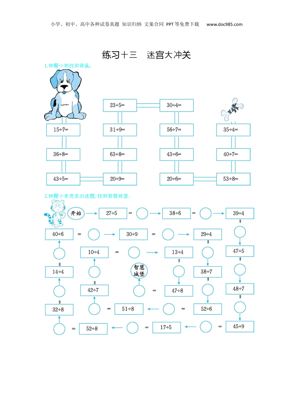 小学、初中、高中各种试卷真题知识归纳文案合同PPT等免费下载www.doc985.com十三练习迷大冲宫关1.快小狗找到骨。帮头2.快小老虎走出迷帮宫,找到智慧城堡。小学、初中、高中各种试卷真题知识归纳文案合同PPT等免费下载www.doc985.com参考答案1.2……14……48……32……27……73……44……37……287……13……26……55……58……32.5……26……29……39……26……653……26……443……26……43……37……15……38……46……362……23……15……7