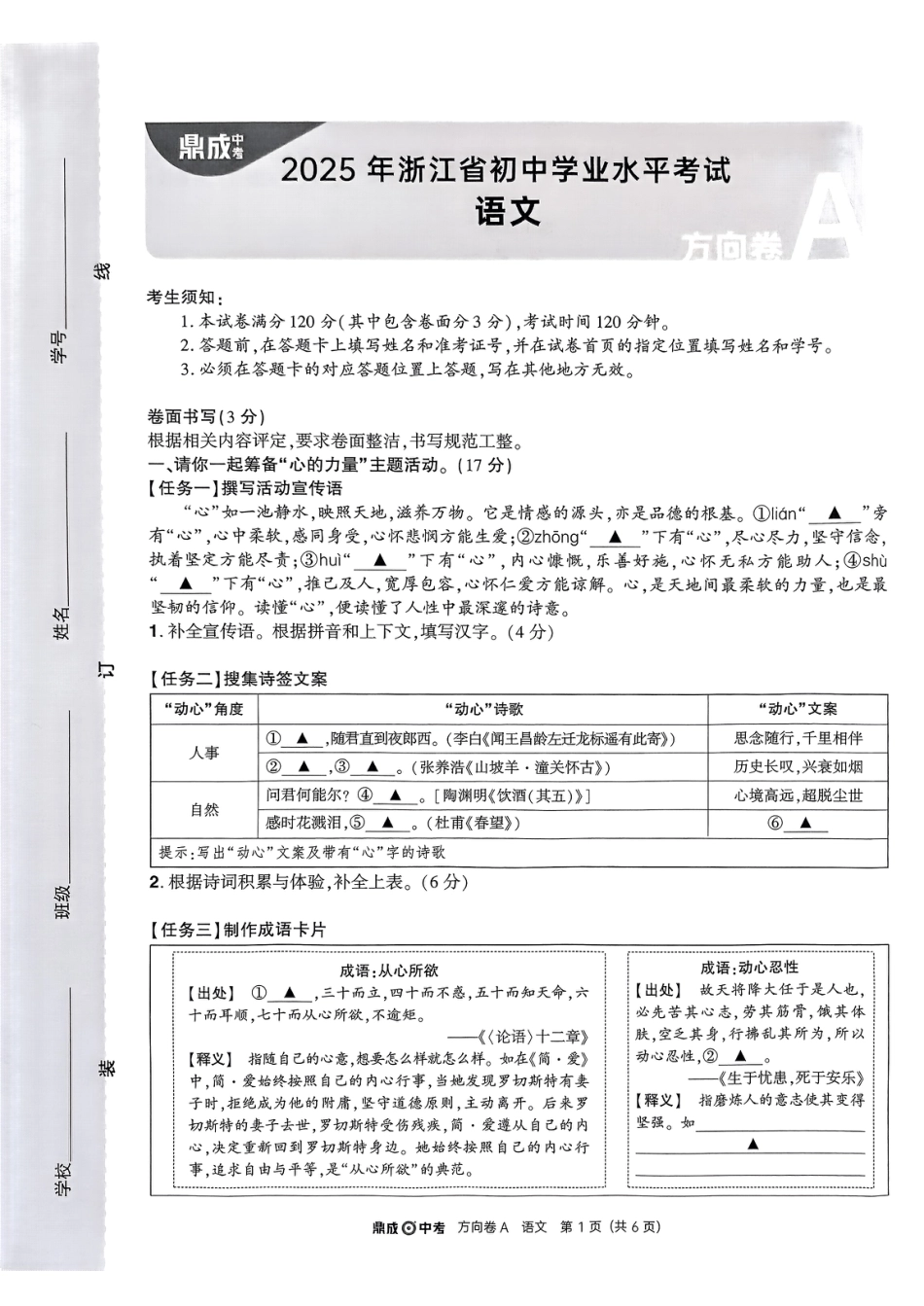 浙江中考方向卷2025浙江A卷语数科社以及答题卡.pdf本文件免费下载 【共40页】