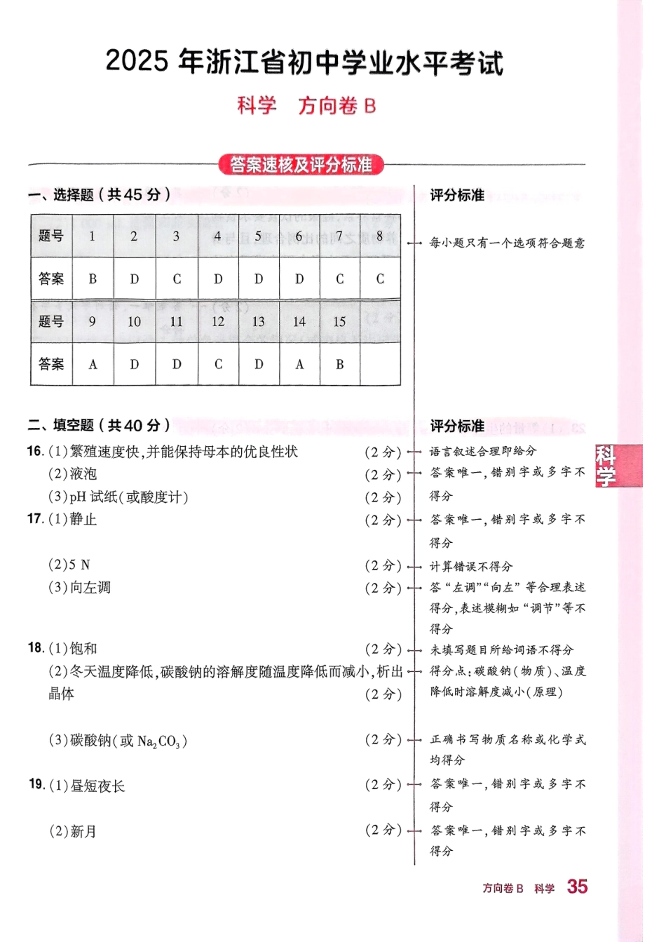 浙江中考方向卷科学方向卷B答案 2025-5-27 183120 1.pdf