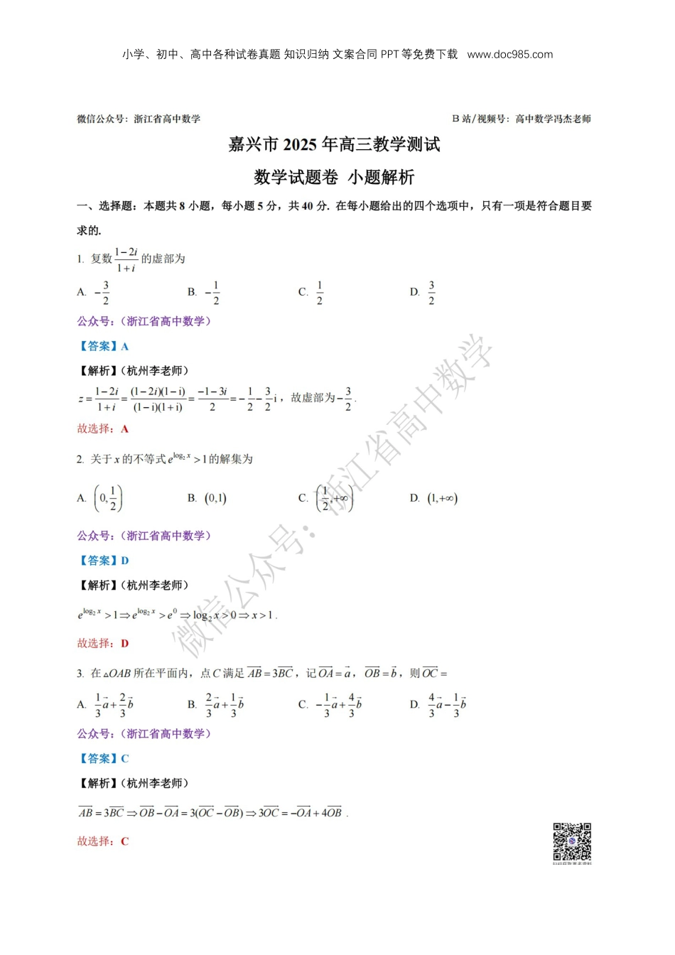 2025年4月嘉兴市高三二模小题解析(1).docx本文件免费下载 【共1页】
