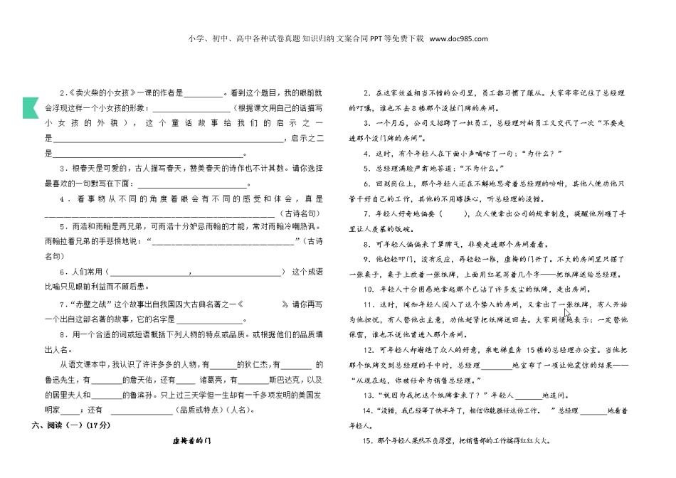 2019s版版小升初语文毕业模拟考试.doc本文件免费下载 【共5页】